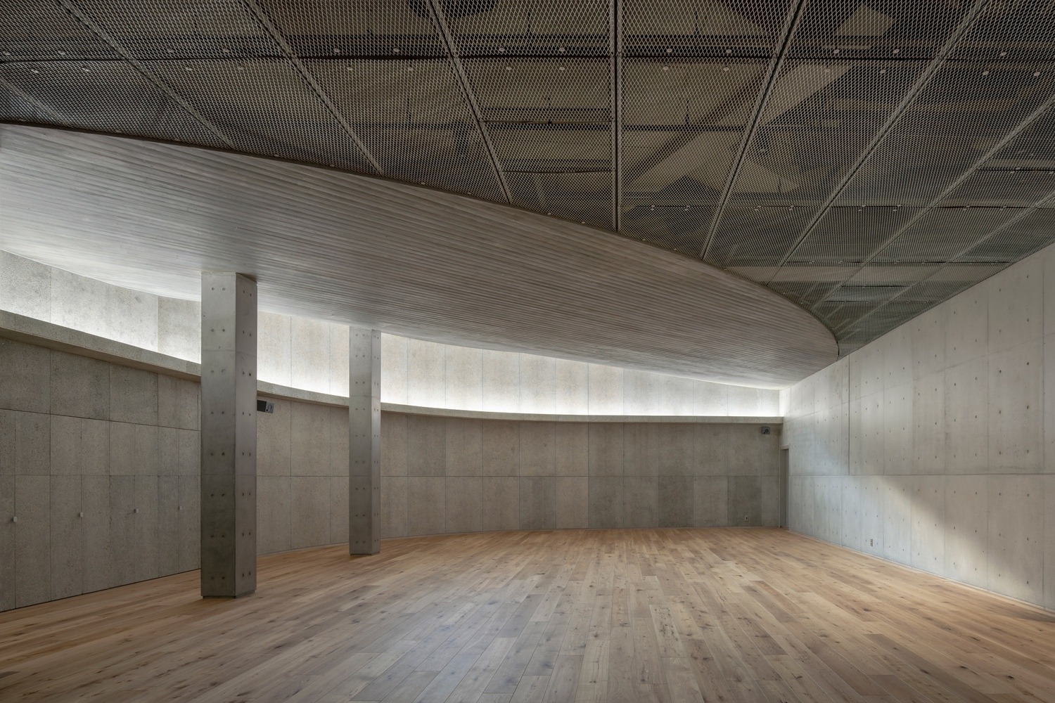 In response to the client's vision, we designed an architecture that surrounds a courtyard, with a roof so light it would appear to have fallen from the sky. The site has a very high floor area ratio and is located on the main road in the centre of the city, with high-rise apartments on either side. The basement of the complex houses a multi-purpose event hall, while the café occupies the three floors above ground.