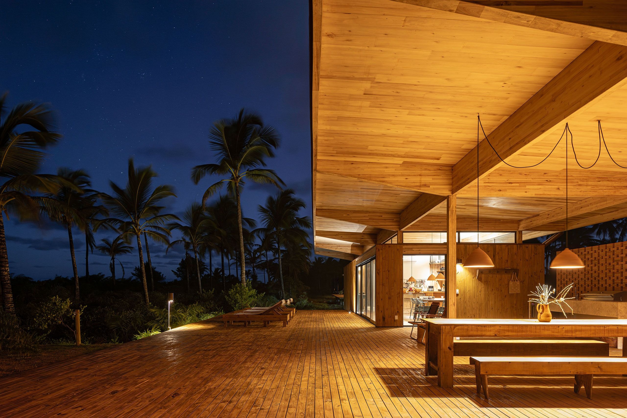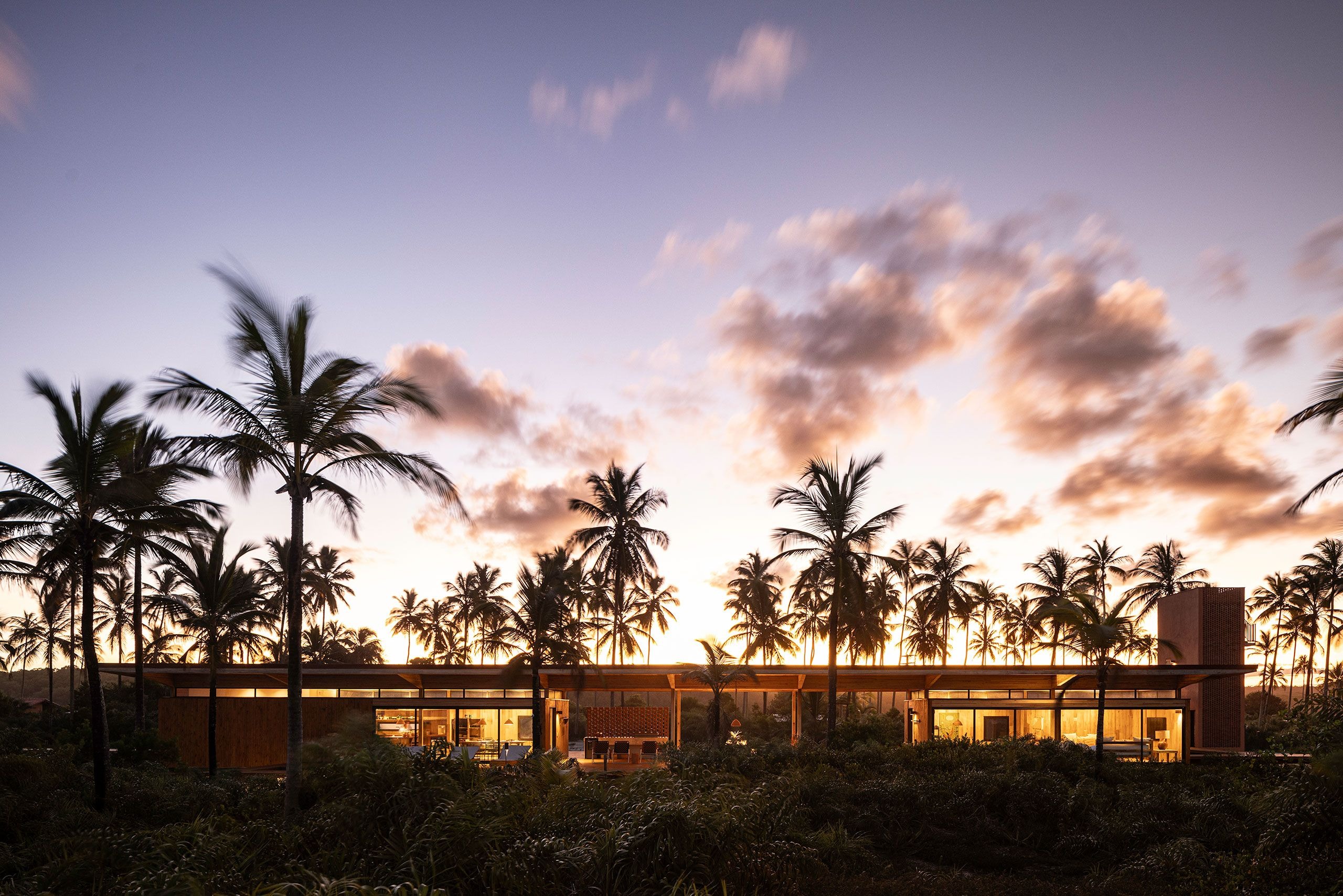 브라질 남부 바이아의 야자수 무성한 반도에서 대서양과 구불구불한 강 사이에 자리한 이 열대 휴양지는 주변 환경을 방해하지 않고 울창한 자연 속으로 조용히 스며든다. 브라질 건축가 UNA barbara e valentim이 설계한 이 프로젝트는 두 개의 개인 주택과 하나의 공유 파빌리온을 담은 세 개의 낮은 목재 볼륨으로 구성되었다.