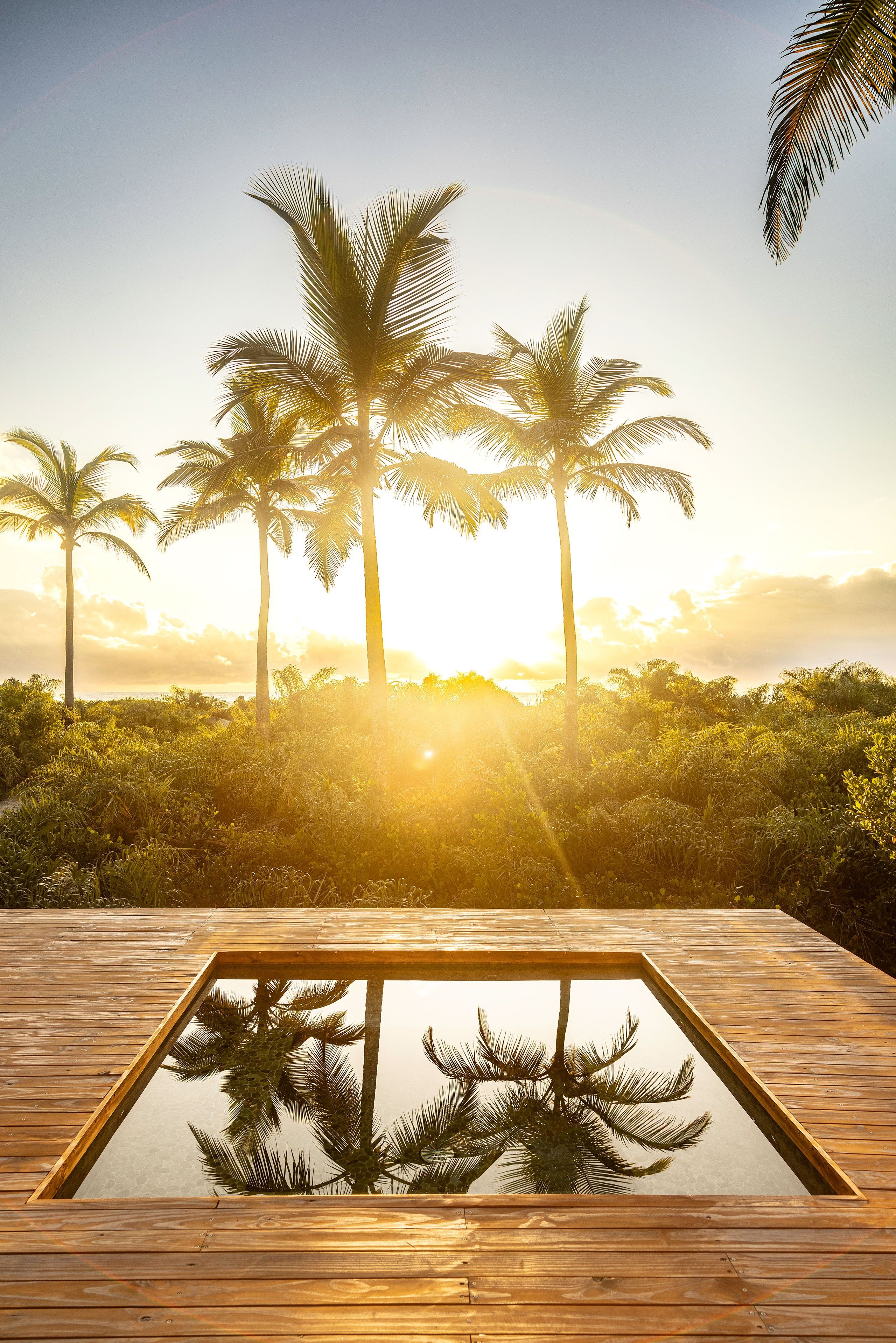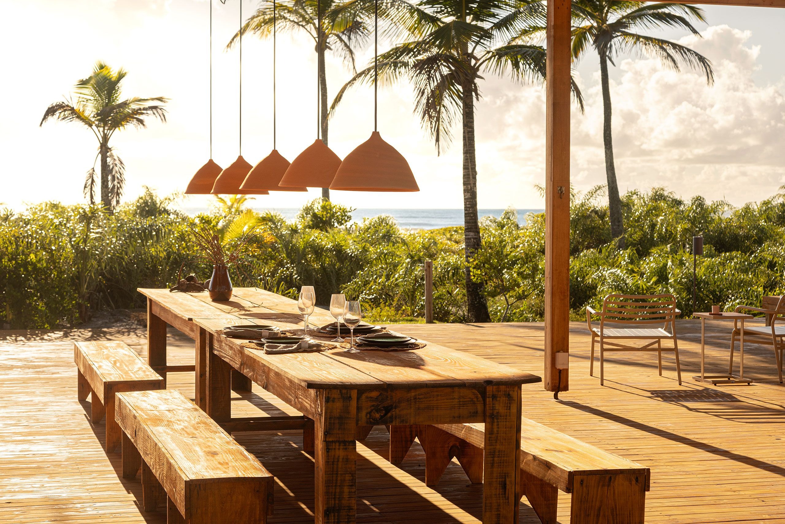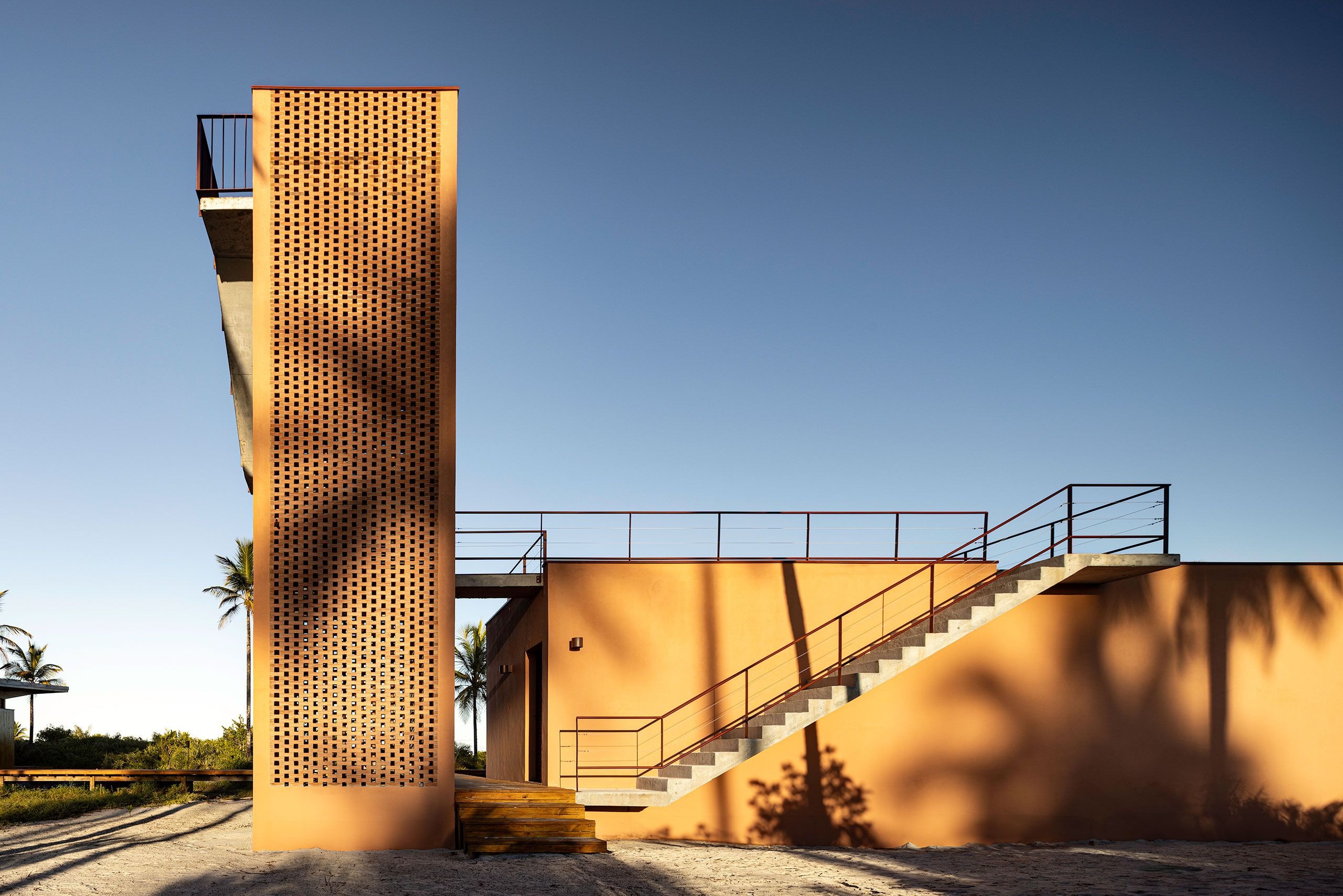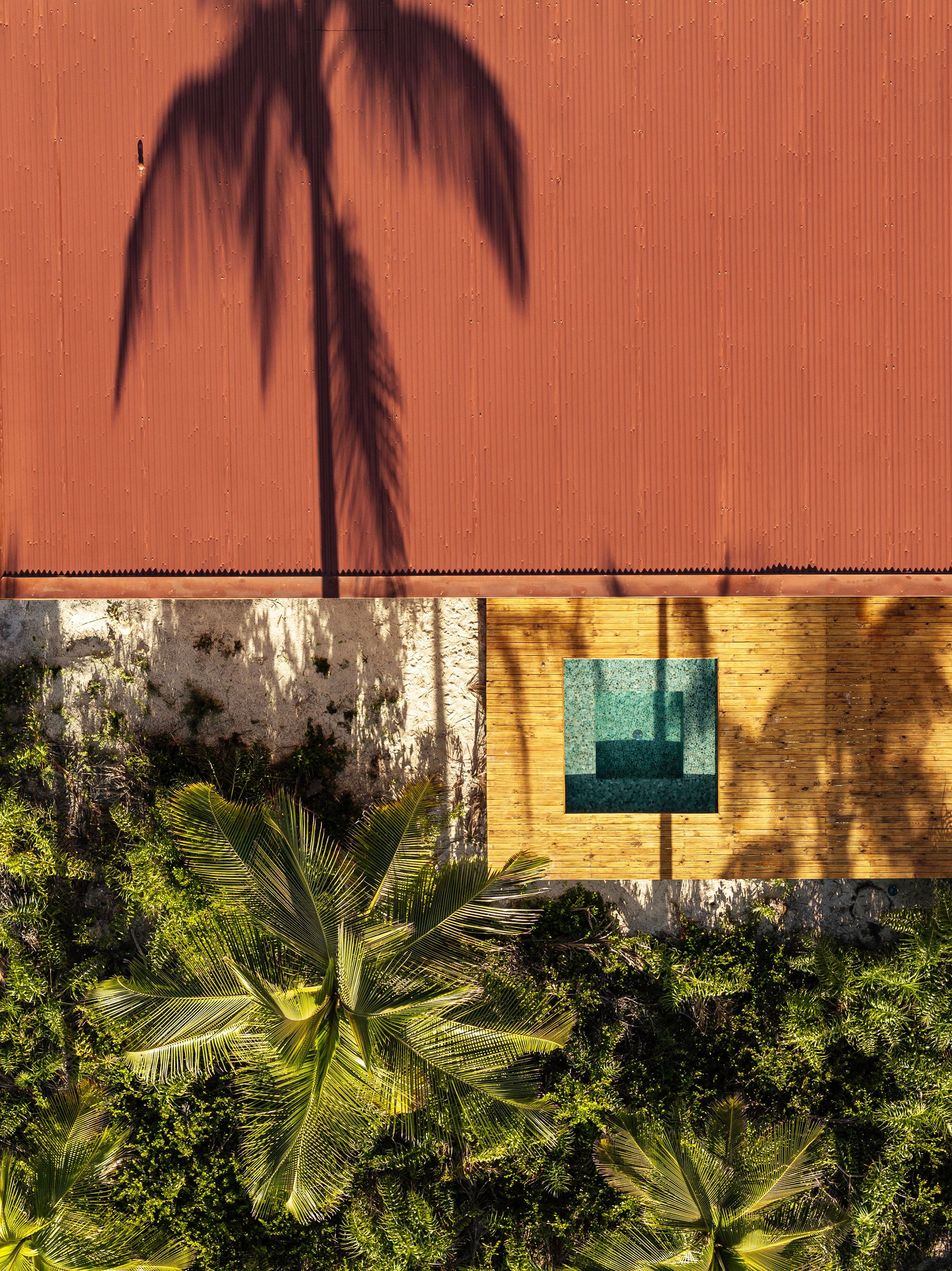 개방형 프레임과 넓은 처마로 구성된 구조물은 내부와 외부의 경계를 흐린다. 가늘고 긴 수평성이 평평한 지형을 반영하고, 목재 외장재는 야자수들의 리듬 속으로 자연스럽게 녹아든다. 해안가에서 바라보면 이 휴양지는 거의 자신의 존재를 드러내지 않는다.