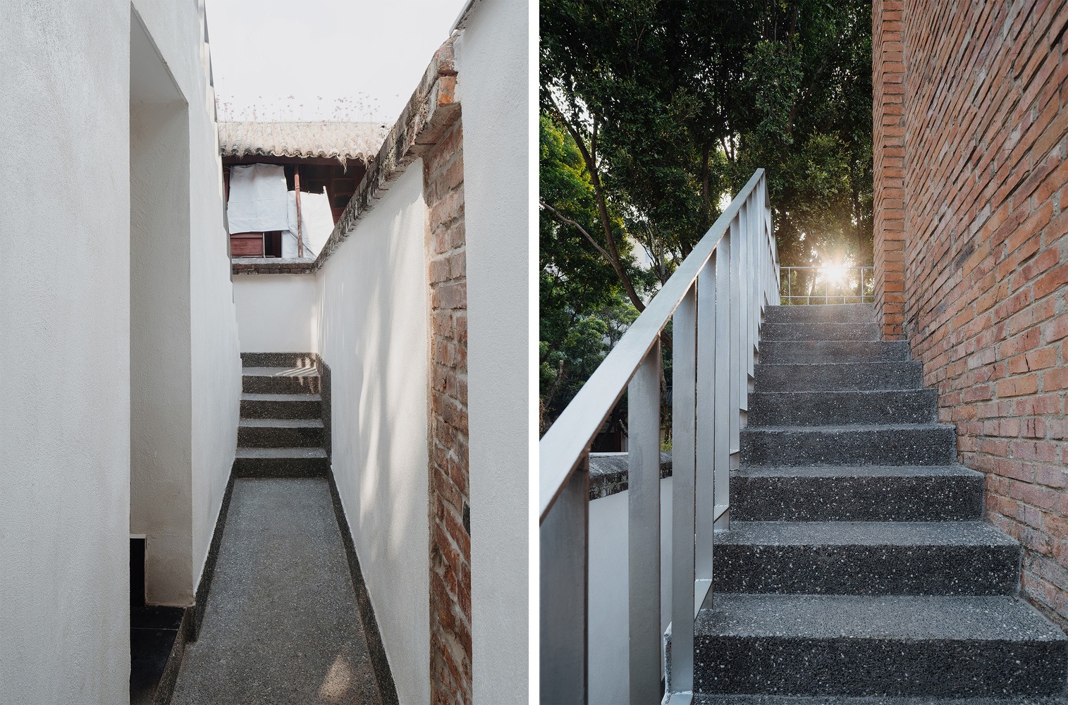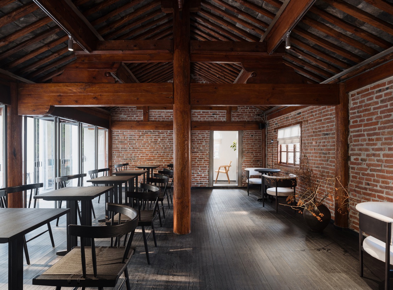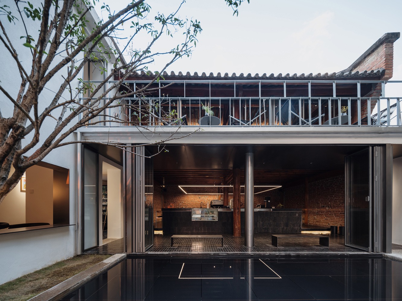 이 복원 작업을 통해 본 건물의 원래 기와, 목재, 벽돌이 위에서 아래로, 안에서 밖으로 자연스러운 본질을 되찾았다. 나머지 외벽은 깔끔한 흰색으로 칠해 조용한 배경 역할을 하도록 하여, 복원된 부분들이 자연스럽게 이 장소의 주인공으로 떠오르도록 했다. 마지막으로 세련된 금속 요소들을 미묘하게 더해 역사적 매력을 보존하면서도 새로운 활력을 불어넣었다.