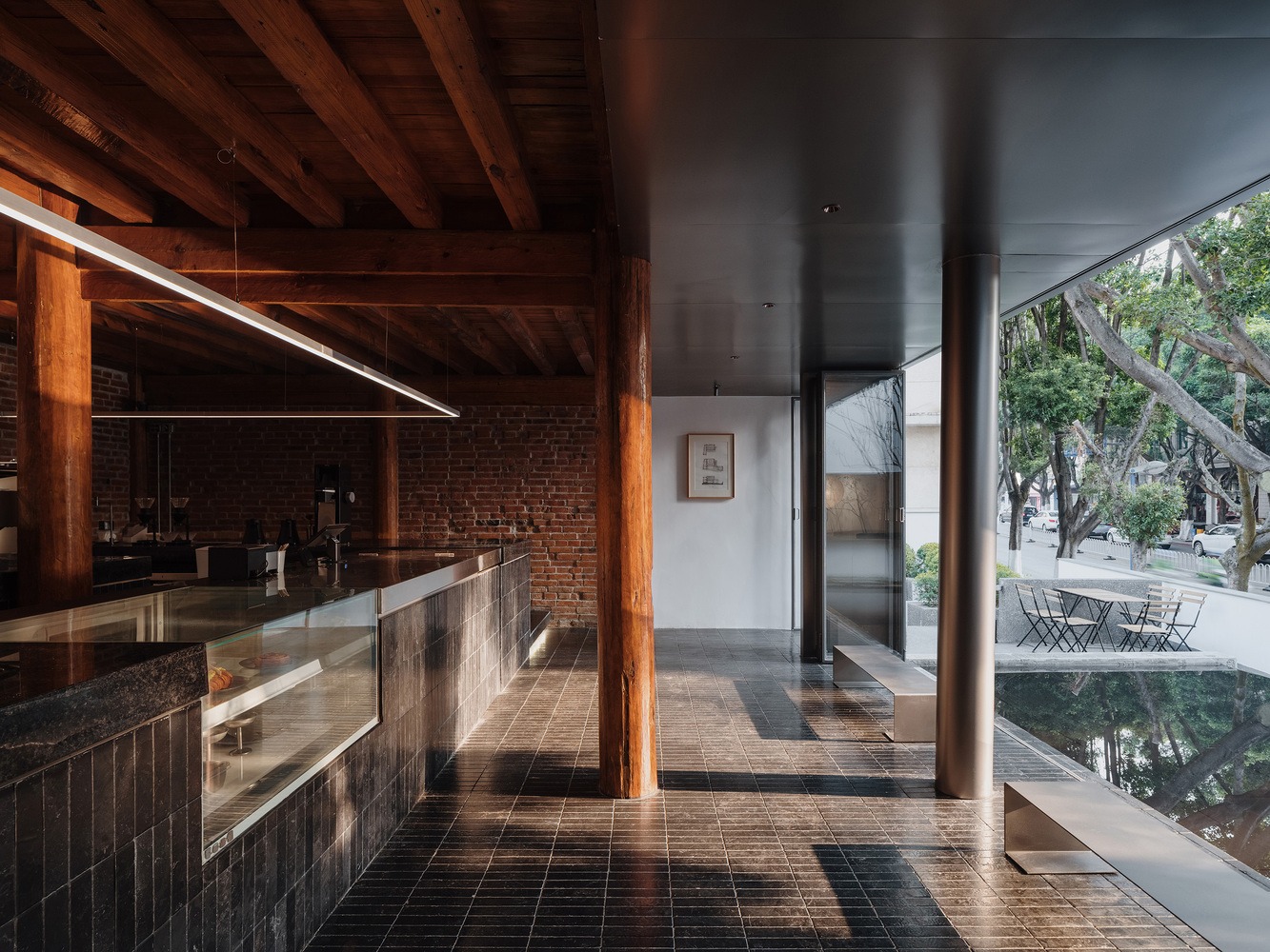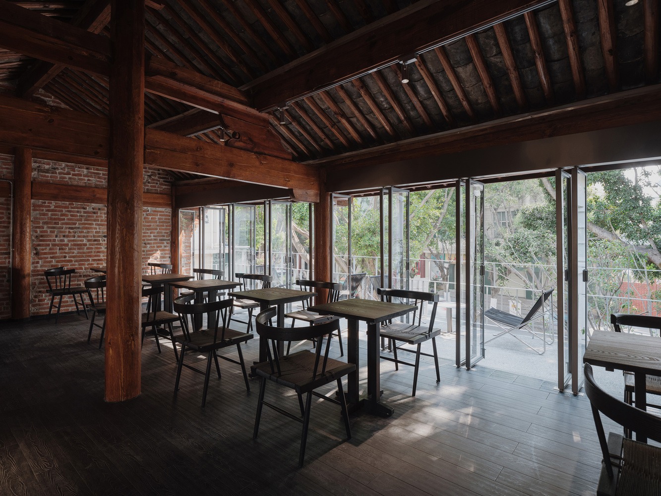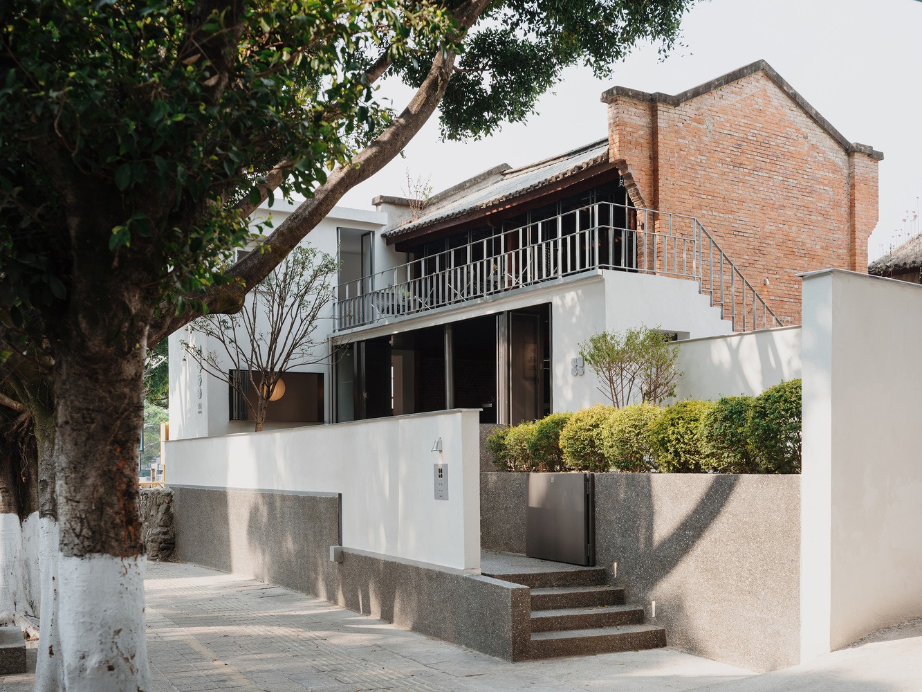 Nestled in the heart of the urban core, the store is designed to exude a modest and understated presence, with careful curation and thoughtful intervention forming the core of the design philosophy. Upon initial site inspection, the interior of the old residence was completely concealed by gypsum boards and latex paint. The first priority was to remove these excessive decorative layers, revealing the wooden roof trusses and red brick walls in their authentic form. This restoration allowed the original tiles, wood, and bricks of the main building to reclaim their natural essence, from top to bottom and from inside out. The remaining exterior walls were then painted white to serve as a backdrop, allowing the restored sections to naturally emerge as the focal point of the site. Finally, subtle metal elements were incorporated into the renovated residence, preserving its historical charm while infusing it with a renewed vitality.