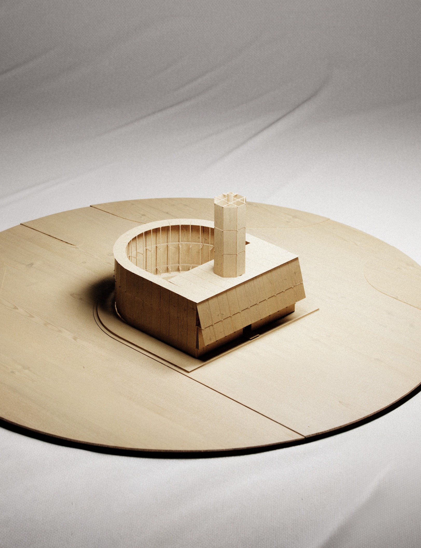 Round About Baths is a temporary public building transforming an impersonal and inaccessible fountain trapped at the centre of relentless traffic into an intimate and communal experience where undressed bodies meet in water. Pride of the 19th century's social movements promoting public hygiene for the working class, urban public baths have slowly closed their doors to be unsurprisingly replaced by private and commercial "wellness centers", mirrors of our times.