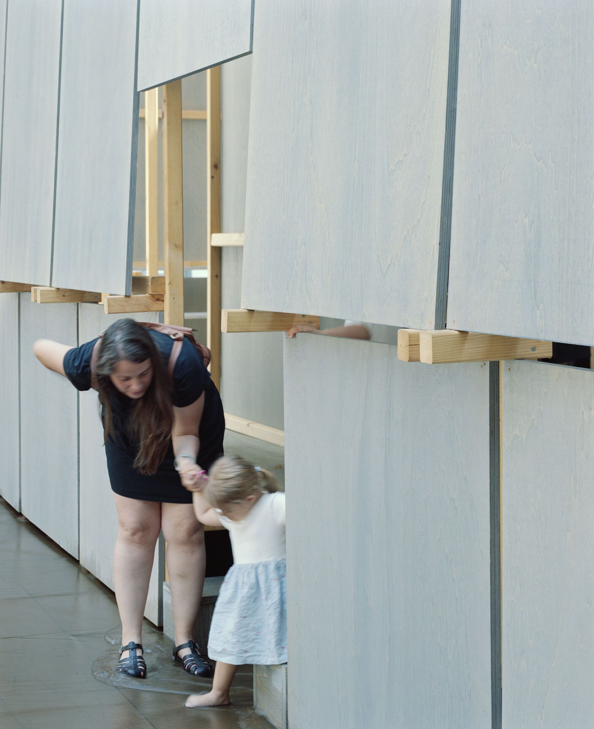 The high walls of the bathing facility are made of a regular timber structure cladded with uncut wooden panels temporarily used for the installation. If the panels find a second life after the festival, the fountain itself will go back to its uselessness, leaving behind only memories and a new vision of what public space could be.