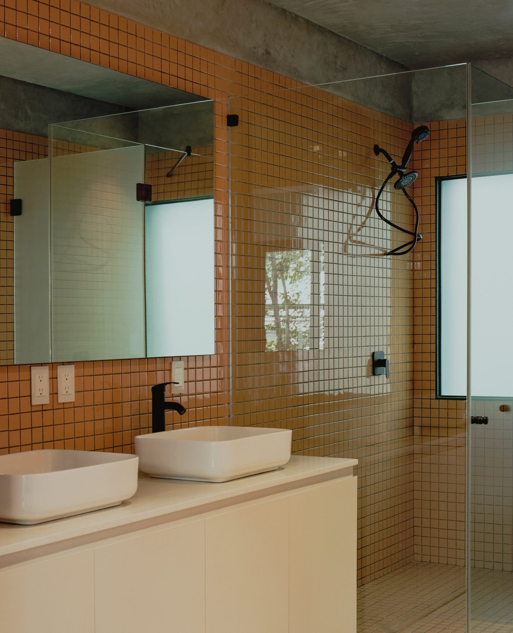 청록색은 Casa Sofia의 새로운 DNA가 되었다. 계단에서 시작해 문틀, 창호, 심지어 화장실의 세면대까지 하나의 색채가 공간 전체를 관통한다. 화장실에서는 황색 타일과의 대비가 더욱 선명하게 드러나며, 각 공간마다 다른 개성을 부여한다.
