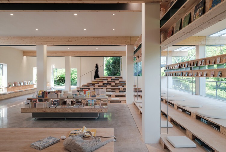 The first floor is planned as a horizontally connected space that embraces the water courtyard. The longitudinal main space on the west side houses the book display and sale area, while the north wing serves as a coffee reading area. The south wing accommodates a reading salon, which connects to the landscaped terrace on the second floor via an external staircase. Stripped of all enclosing walls, what remains is a set of disordered and meaningless concrete frame structures. The intervention of a series of new "structures" imposes a new order to the originally chaotic structure, transforming it into spatial fields which are deeply connected to nature.