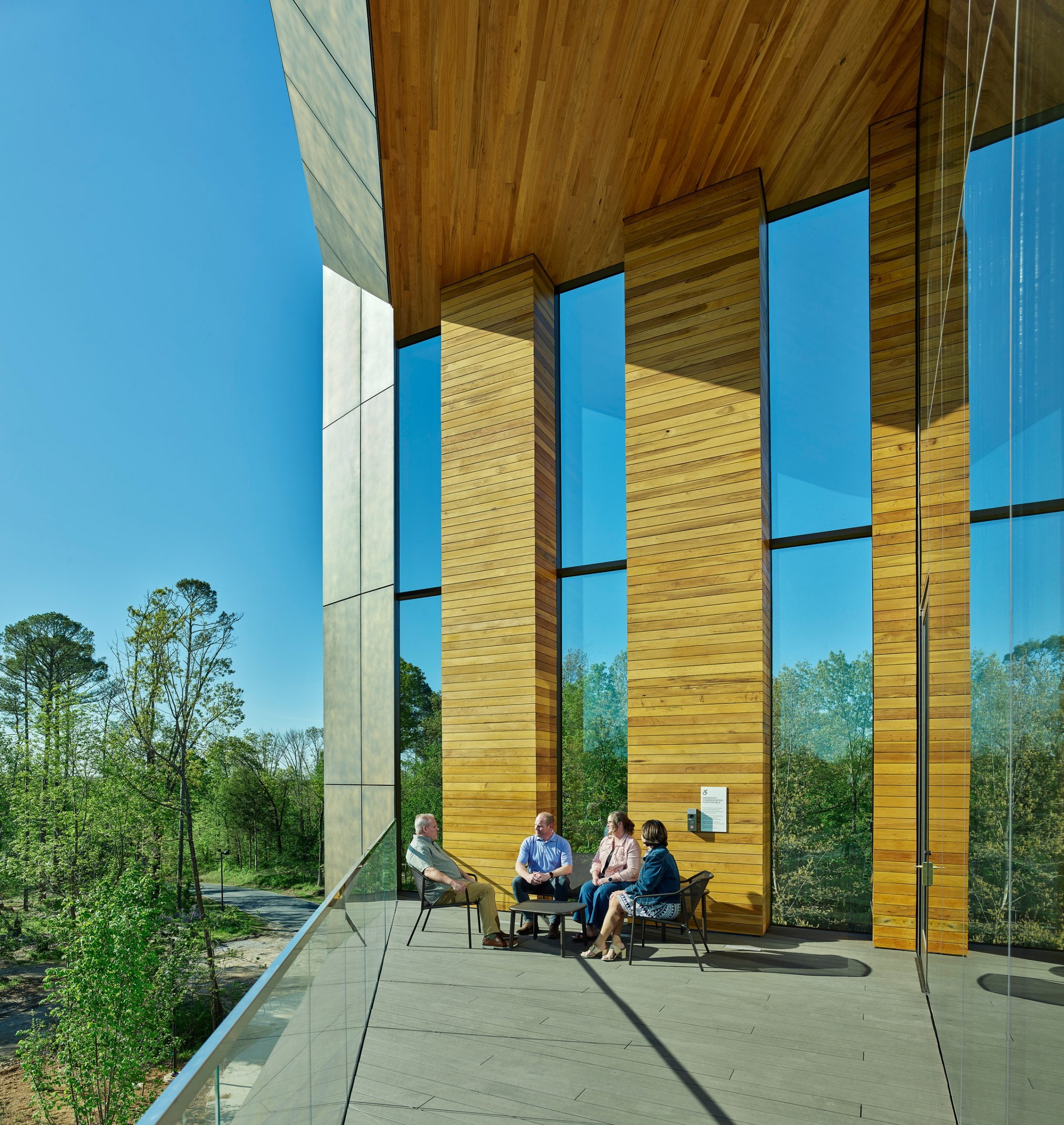 Marlon Blackwell Architects was informed by the local context, particularly the forests and the karst landscape, a type of topography with caves and springs.