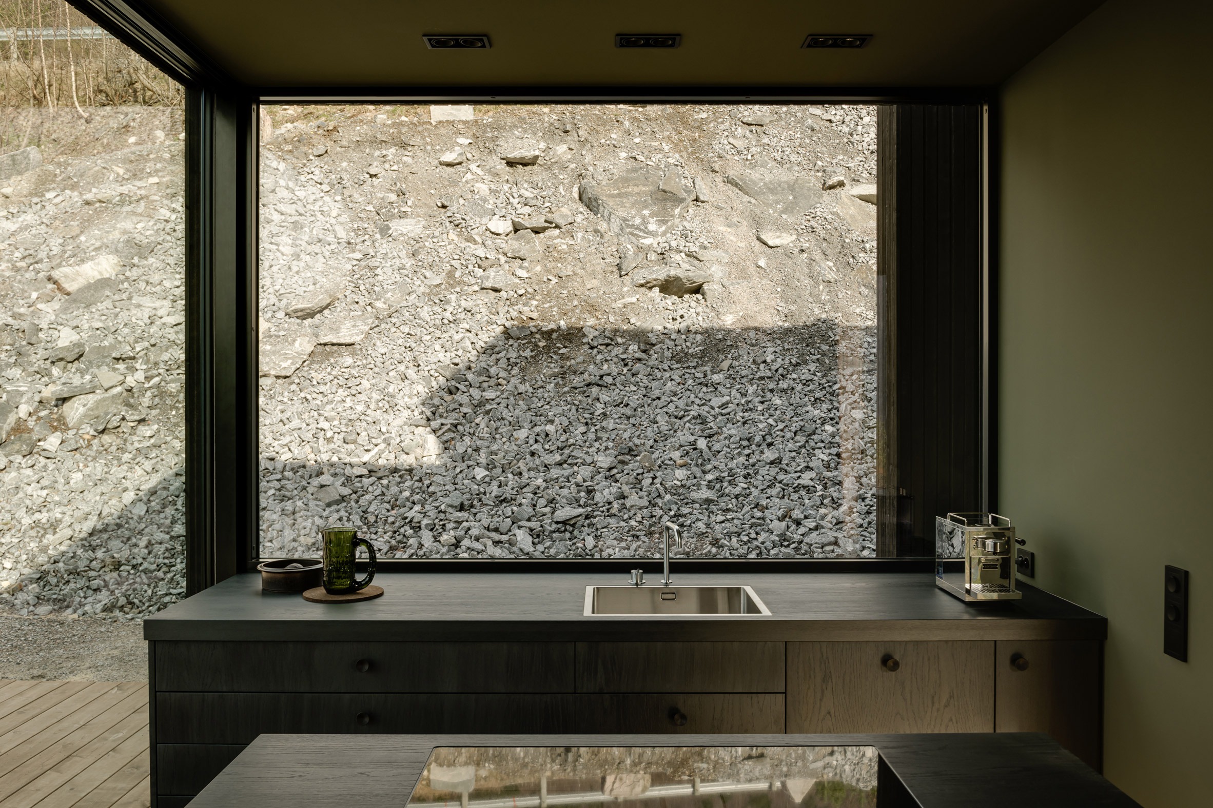 "이 주택은 가파른 바위 경사면을 따라 피오르드 위 높은 곳에 자리잡고 있으며, 이곳에서 건축은 언제나 지형과의 협상이다"라고 스튜디오 창립자 막시밀리안 사비츠키는 설명한다. 이러한 철학은 프로젝트 전반을 관통한다. 팀은 처음부터 가파른 바위 지형을 평평하게 만들지 않기로 결정했다. 지형을 재구성하는 대신 그 특성을 보존한 것이다.