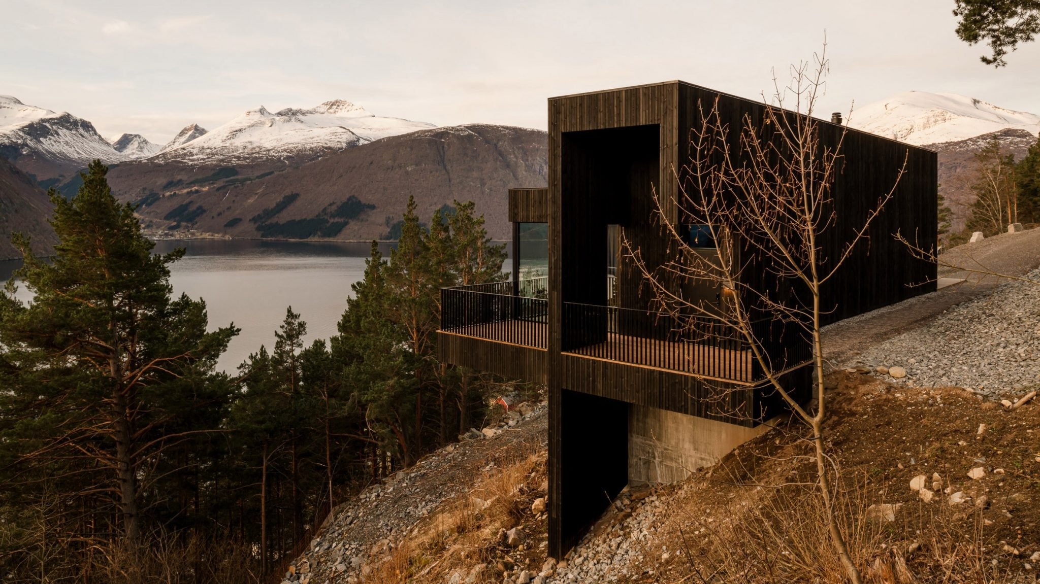 The house is designed for a client who spent years searching for a site where they could enjoy the dramatic landscape of Valdall, a valley in Møre og Romsdal county.