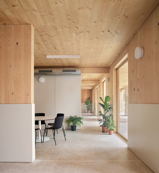 Feeling of Home -The goal has been to maximize the feeling of home and distance from the appearance of an assistance facility, through the warmth of the interior materials and a domestic scale of the spaces.