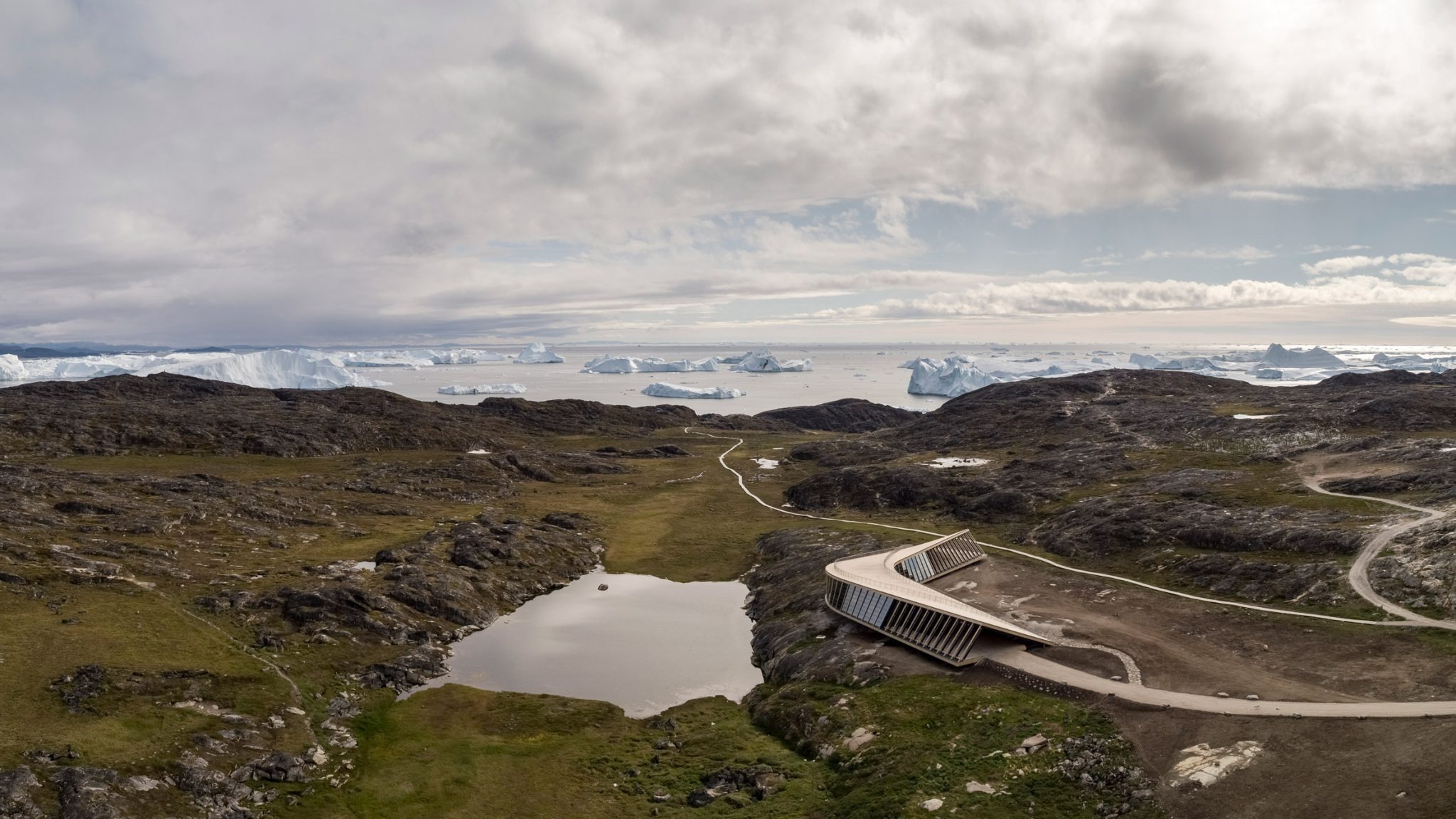 북극권 250킬로미터 북쪽, 그린란드의 거친 암반 위에 하나의 건축이 자리한다. 덴마크 건축가 도르테 만드룹이 이끄는 Dorte Mandrup Arkitekter가 설계한 일루리사트 빙하협곡 센터다. 이 방문자 센터는 기후변화의 최전선에서 연구와 교육, 전시를 아우르는 지식의 허브로 기능한다.