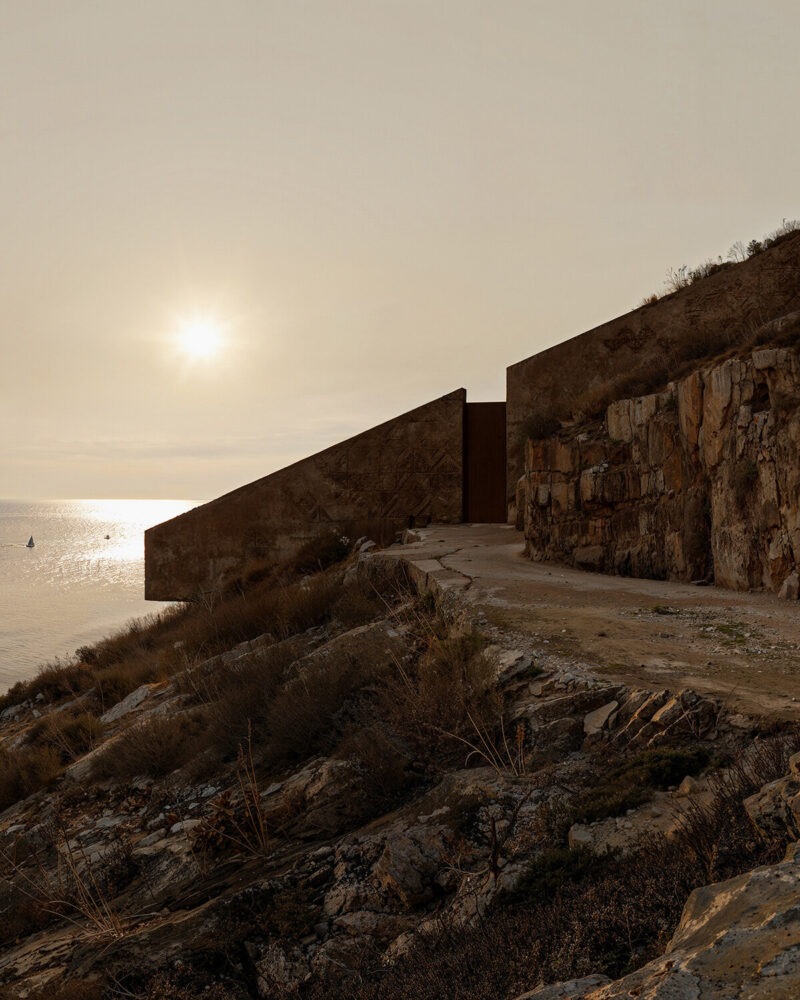Guided by the principles of ‘spirit of place, silent monumentality, and the essential,’ the design is imagined as a direct response to the raw, coastal landscape. The villa emerges from the hillside as a carved concrete form, its geometry drawn from the language of caves and ancient stone structures.
