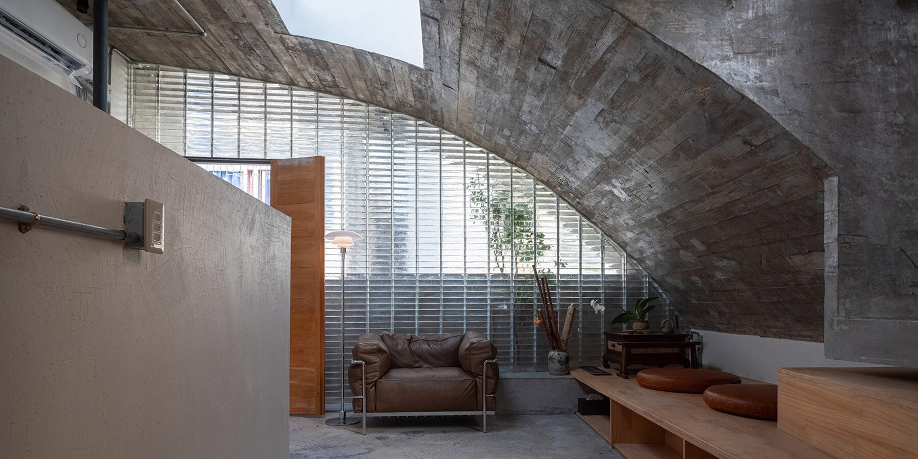 concrete arches enclose glass block interiors of renovated xuebei home in guangdong
