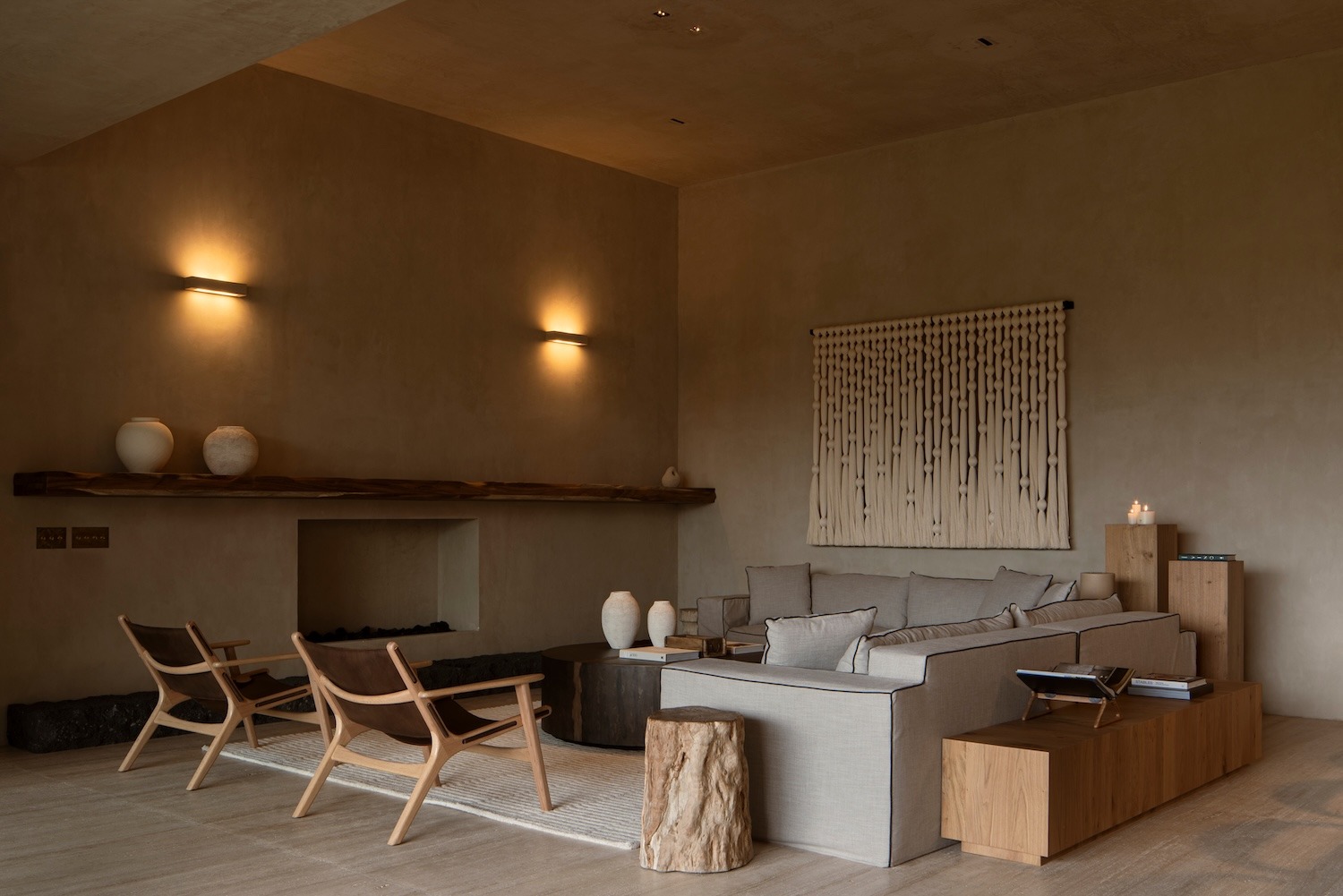 재료 전략은 최소한의 재료로 최대의 결과를 얻는다는 원칙을 따른다. 인근 부지에서 채취한 지역 석재, 광택을 내지 않은 멕시코산 대리석 바닥, 그리고 손으로 바른 석회 페인트가 석재의 자연스러운 색조를 보완하며 단색조의 거대한 형태를 만들어낸다. 오래 견디도록 선택된 이 품격 있는 재료들은 전통적인 건축 방법을 되살리면서도, 겉모습을 흉내 내지 않고 역사적 건축 기법과 대화하는 방식을 보여준다.