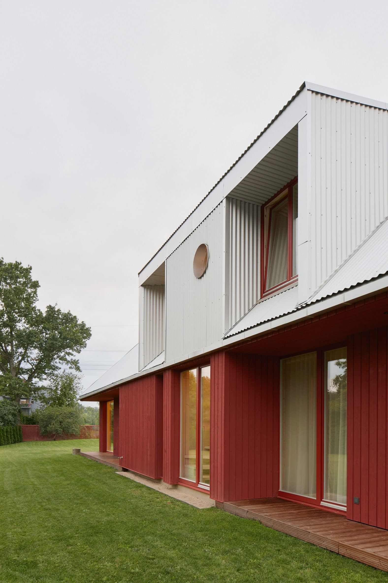 색채가 짓는 경계의 집 Gaiss tops red home in Latvia with corrugated metal roof