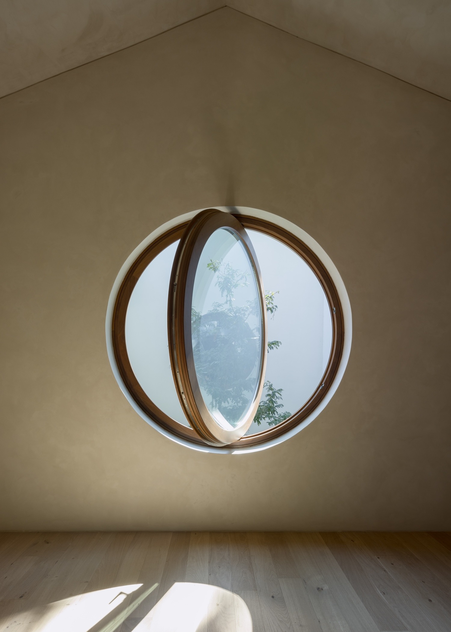 세 개의 중정이 이 집의 핵심이다. 거실과 침실의 중정은 안과 밖의 경계를 흐릿하게 만든다. 곡선 벽이 날카로운 모서리를 지우고, 분리는 부드러운 전이가 된다. 자연광이 스며드는 은밀한 공간이 생긴다. 침실과 거실 사이 세 번째 중정은 더 내밀하다. 이곳은 위층 녹음실에 빛을 보내면서 생활 공간 사이의 시각적 연결을 만든다.