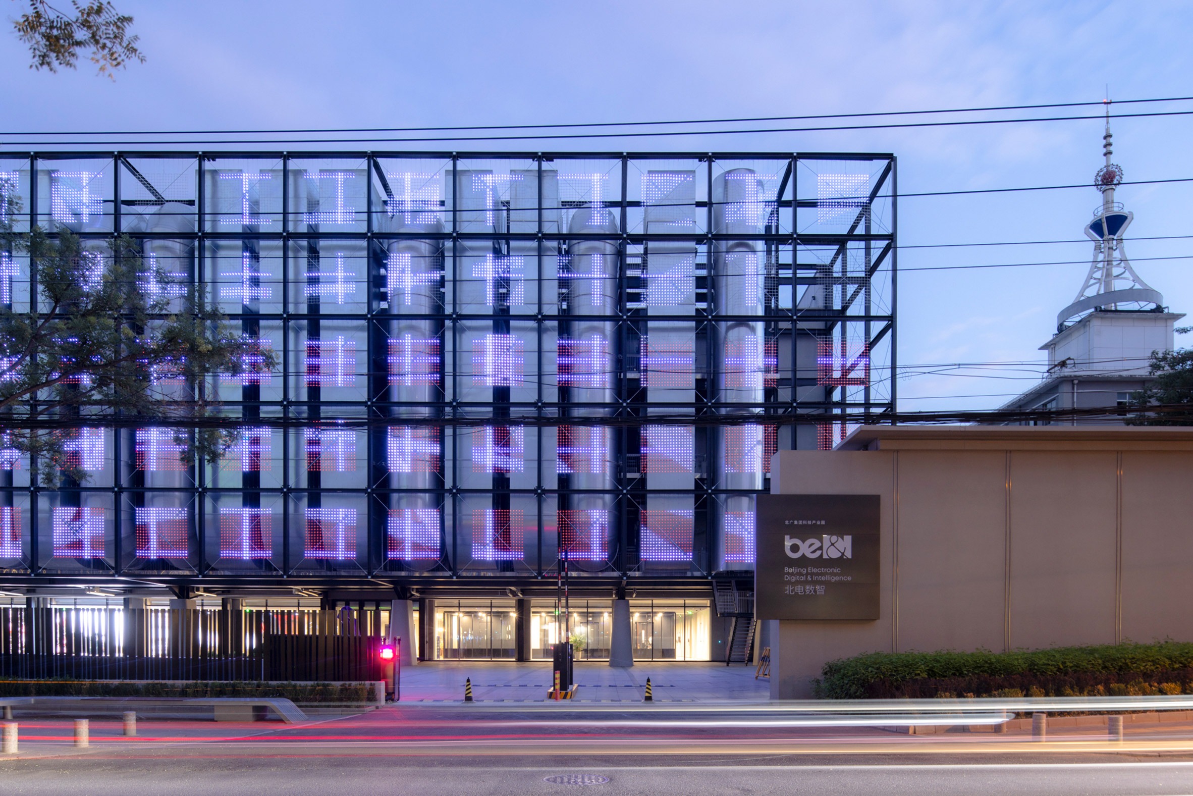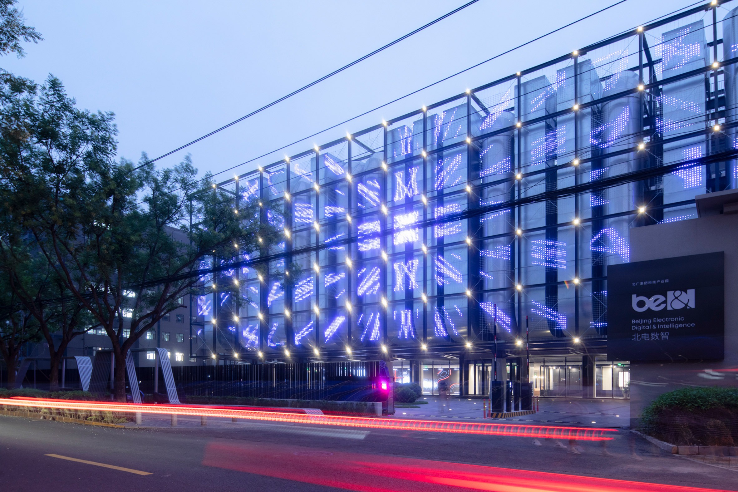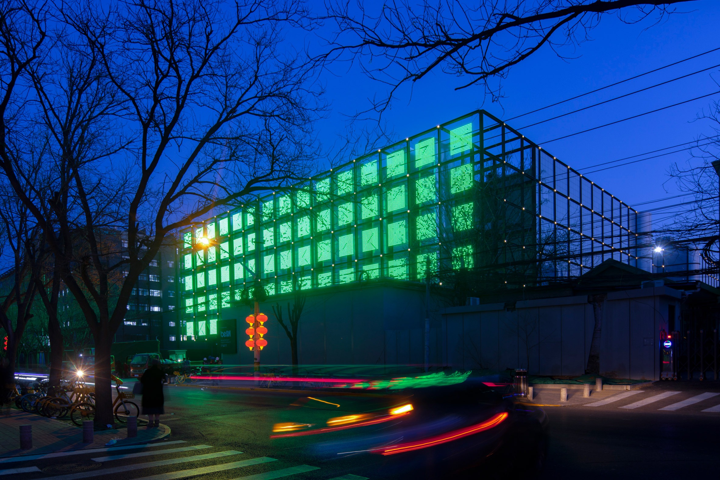 A steel grid wrapped in LED netting cloaks the metal ductwork of Spark 716, an AI data centre and "computing power park" in the centre of Beijing, completed by local architecture practice LLLAB.