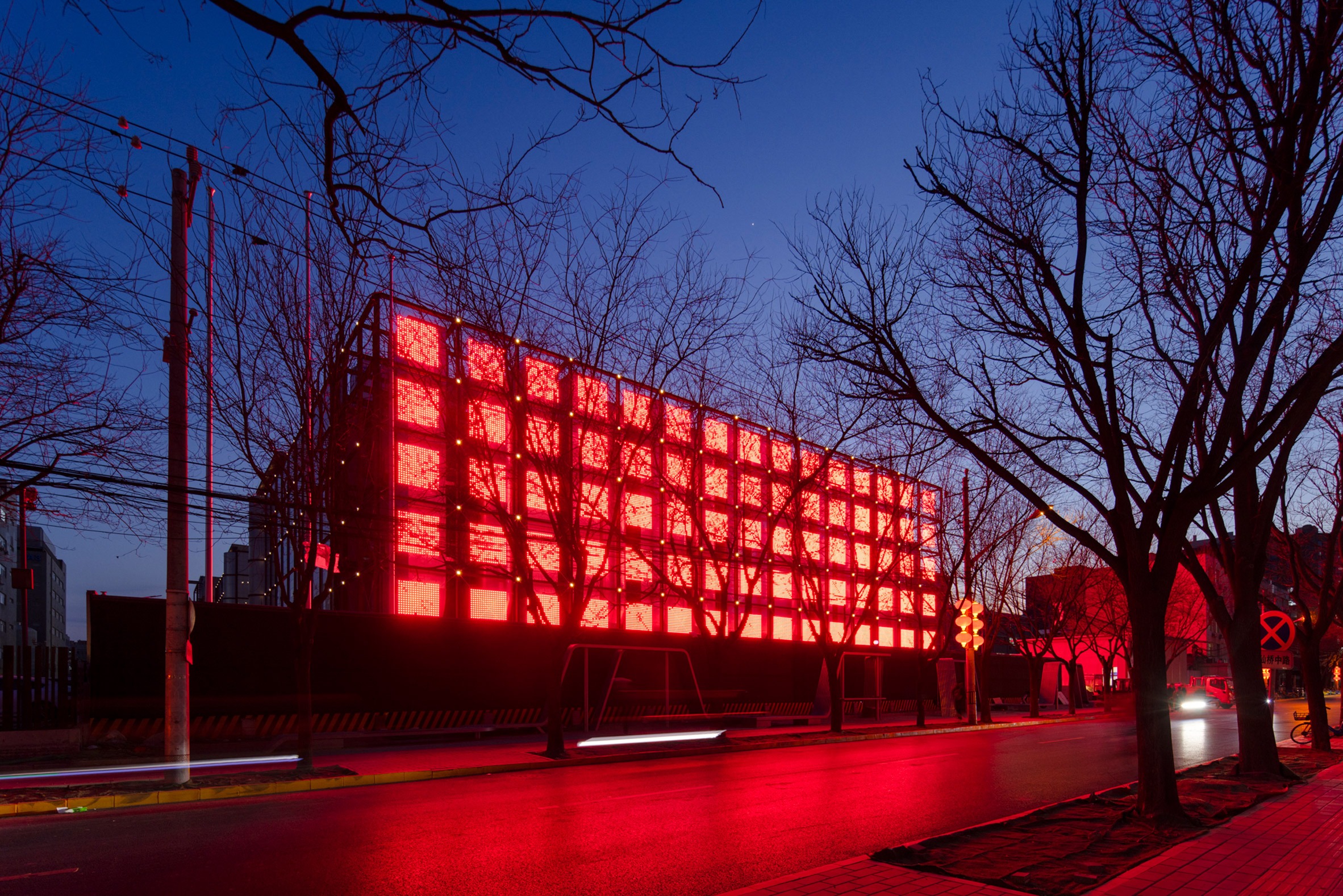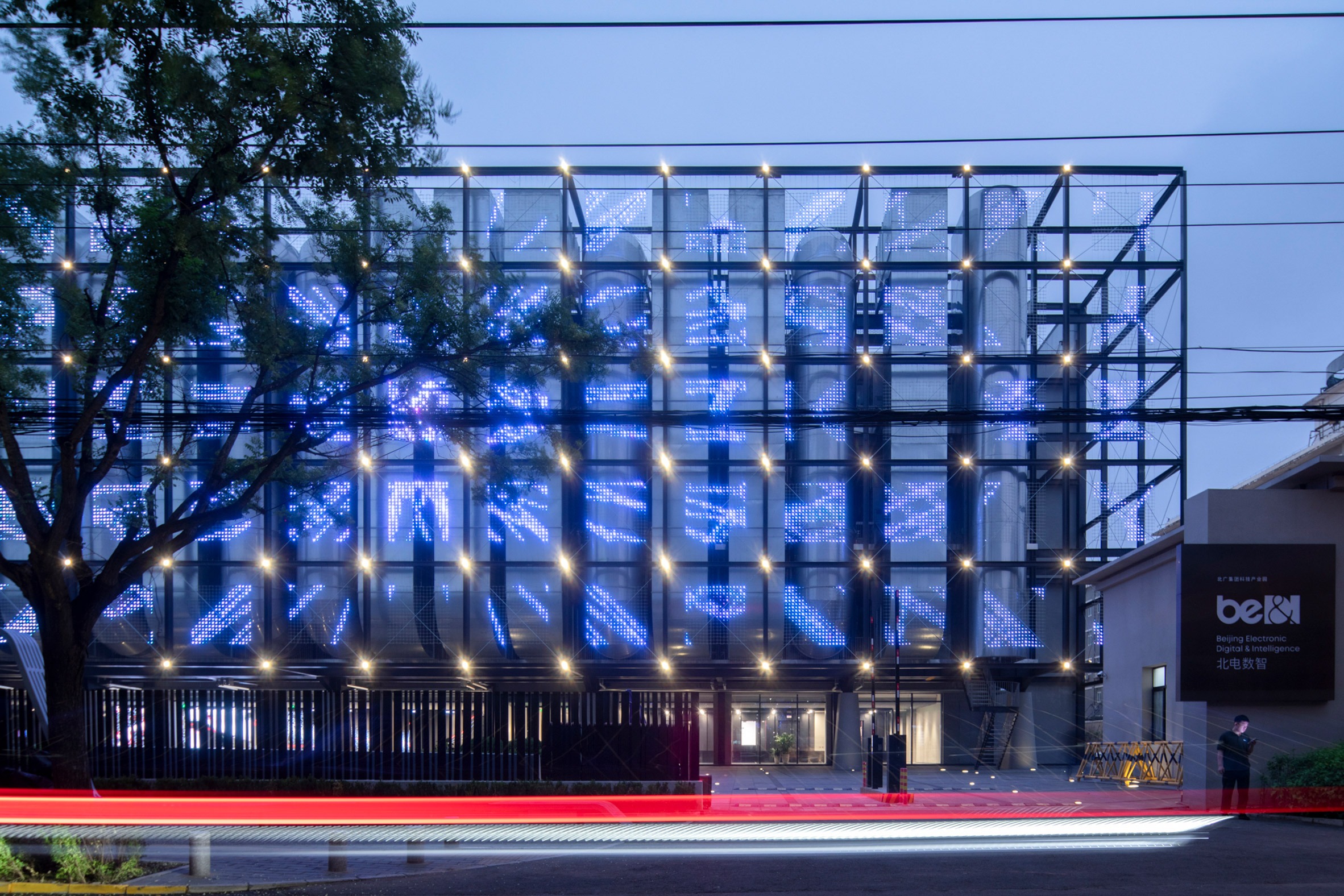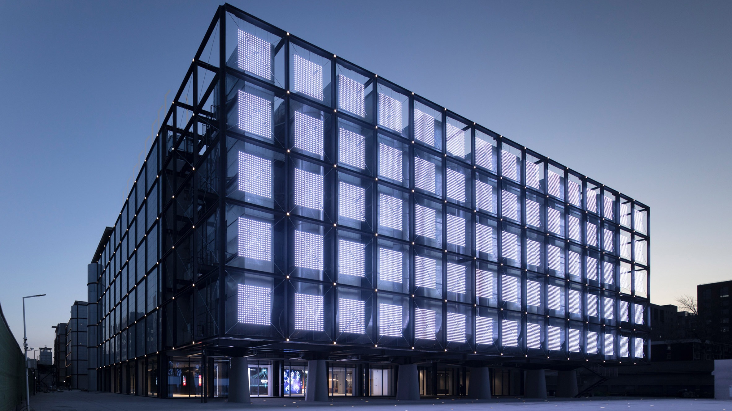A steel grid wrapped in LED netting cloaks the metal ductwork of Spark 716, an AI data centre and "computing power park" in the centre of Beijing, completed by local architecture practice LLLAB.