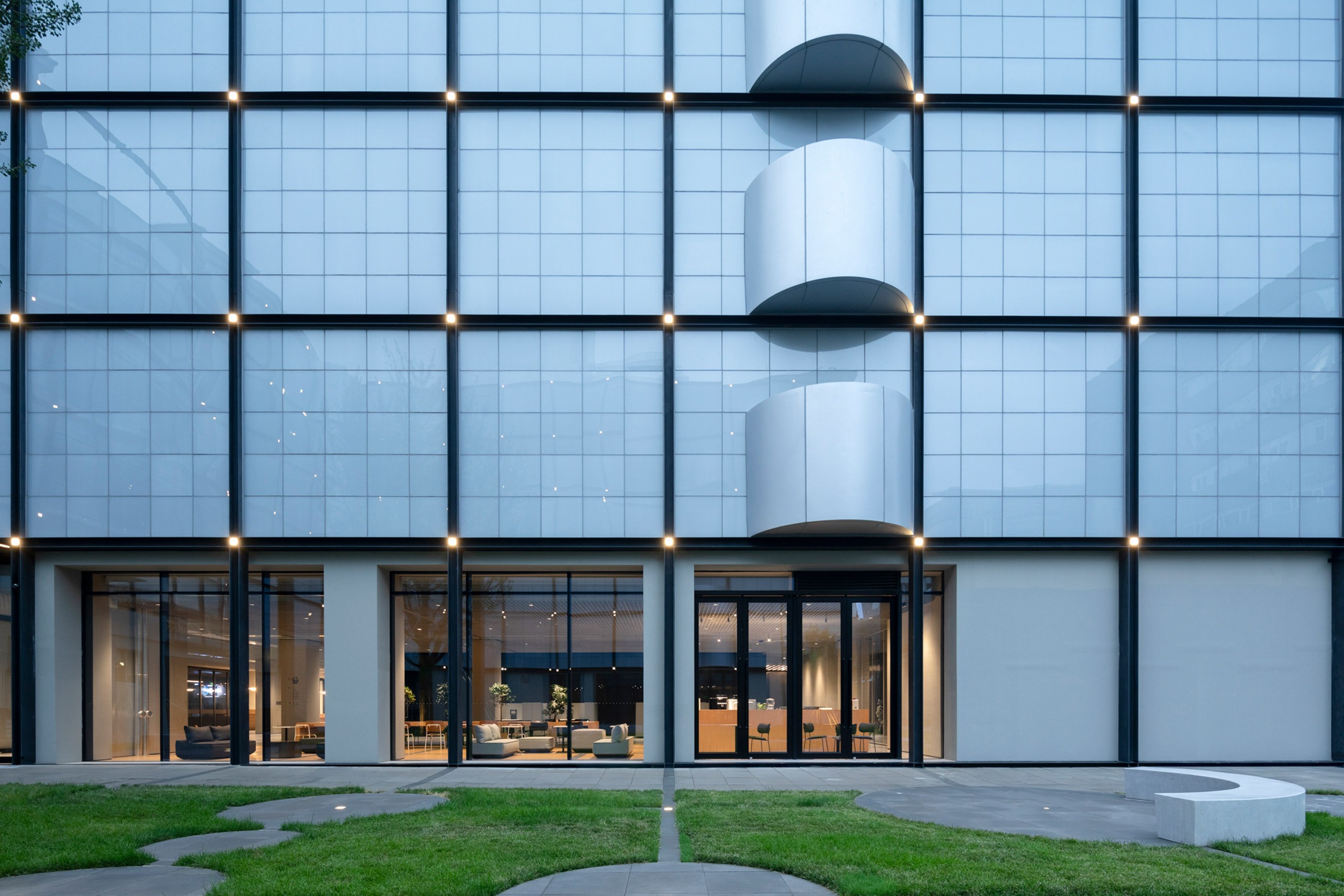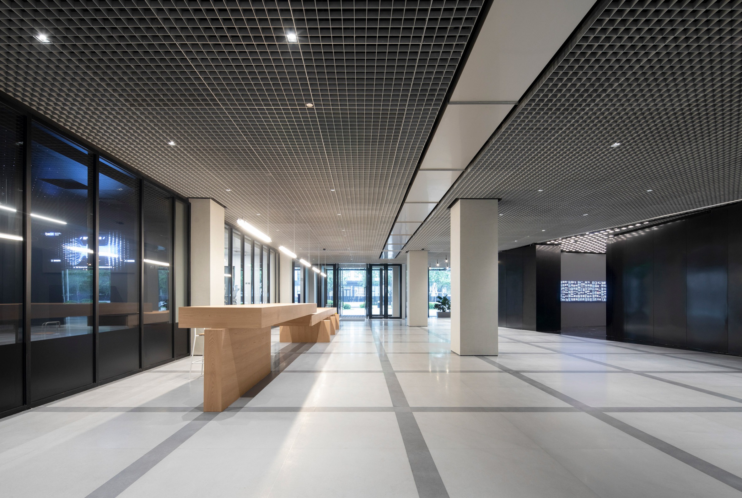 "The grid organises the building's physical structure while also evoking the language of the virtual world — a digital matrix that represents information, order, and flow," Hanxiao and Luis said.