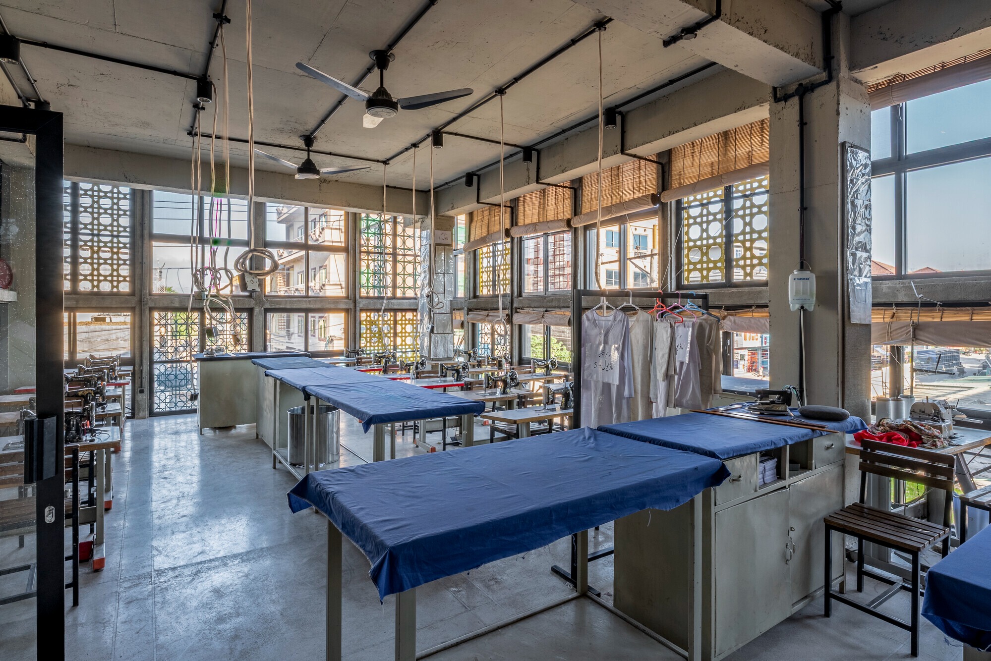 자알리 스크린을 통과한 빛은 실내에 색색의 그림자를 드리운다. 아침 햇살이 동쪽 교실로 스며들 때, 재봉 기계 앞에 앉은 학생들은 따뜻한 빛 속에서 하루를 시작한다. 한낮에는 스크린이 강한 햇볕을 걸러내고, 저녁에는 건물 내부의 불빛이 스크린을 통해 거리로 새어 나와 주변을 밝힌다.