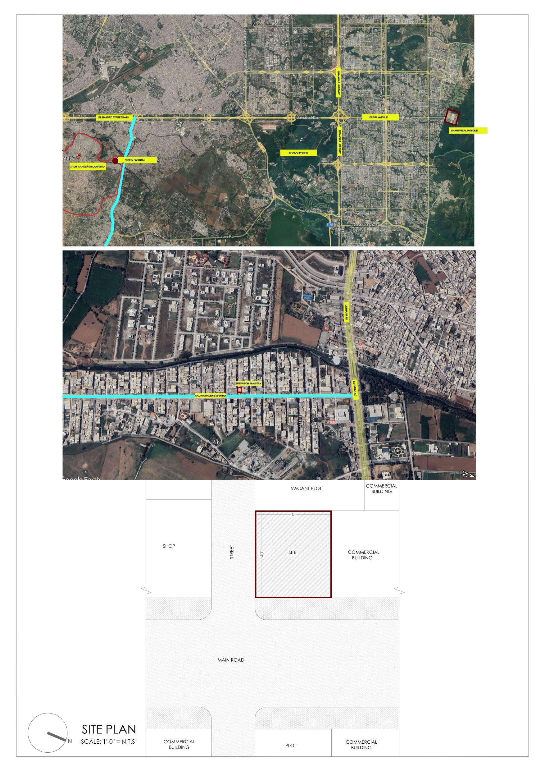 Ghauri Road 모퉁이, 130제곱미터 대지 위에 건물이 들어섰다. 주변은 소규모 상가, 작은 주택, 노점상, 그리고 절충적인 건축물들이 뒤섞인 밀집 지역이다. 2019년 의뢰를 받아 2020~2022년 설계, 2021~2023년 시공을 거쳐 완공 직후 입주했다. 건축가 Mohammad Saifullah Siddiqui와 협력자들, 그리고 조경, 구조, 기계/전기/배관 설비 컨설턴트와 시공사가 함께 만들었다.