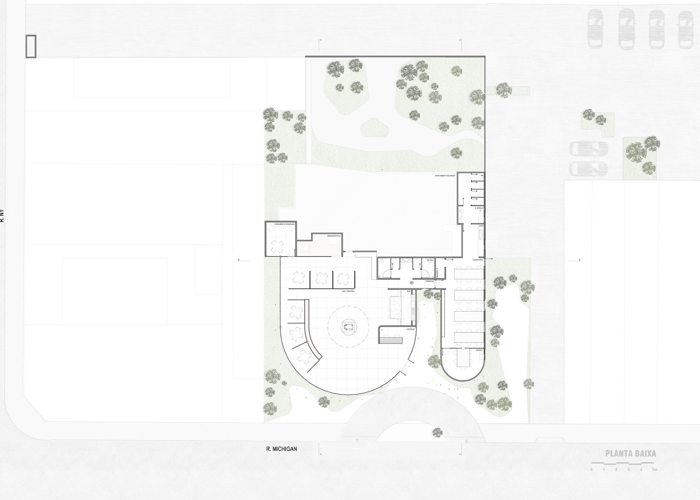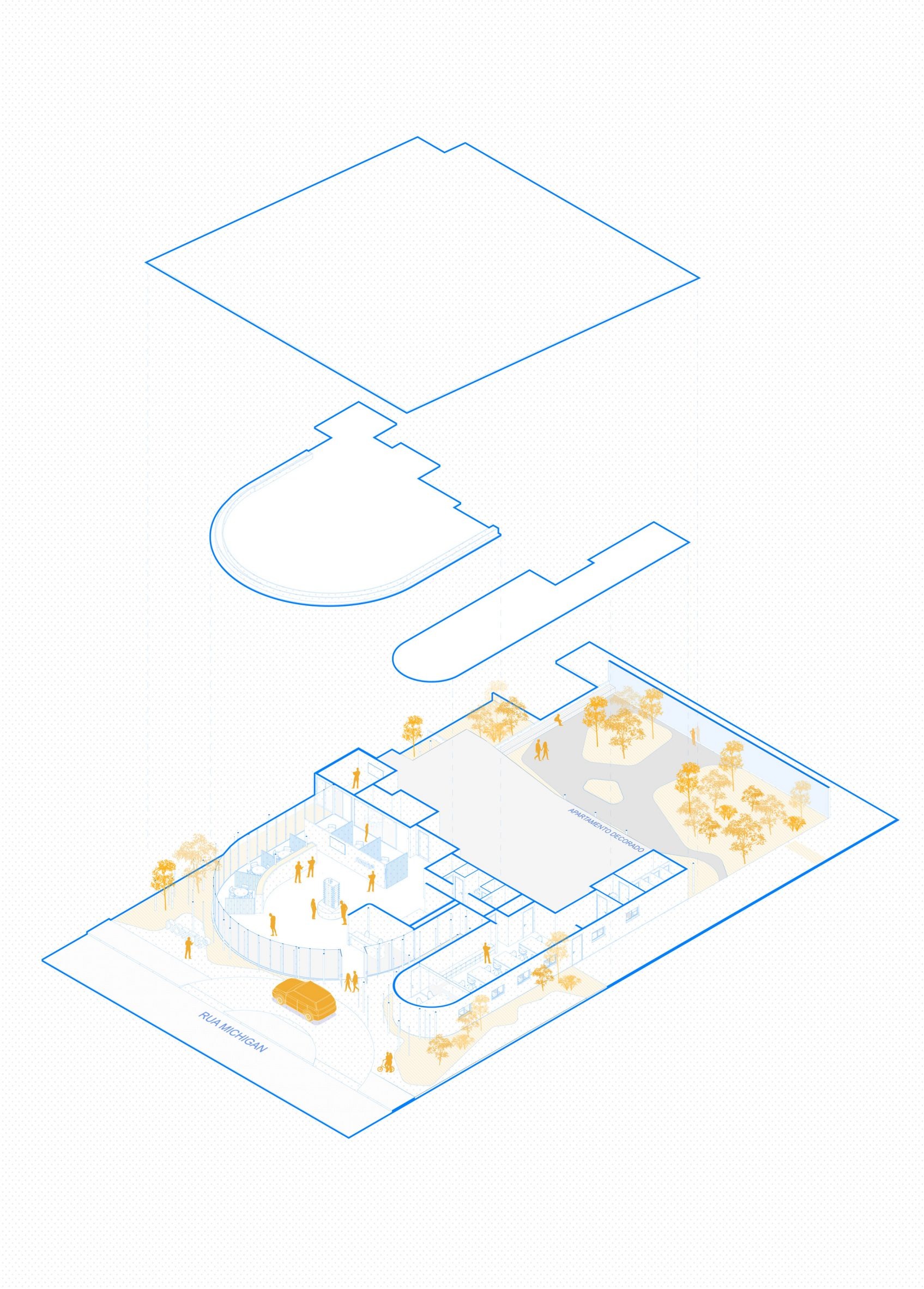 "The project proposes a reading of lightness and formal silence, integrating naturally into the urban fabric."