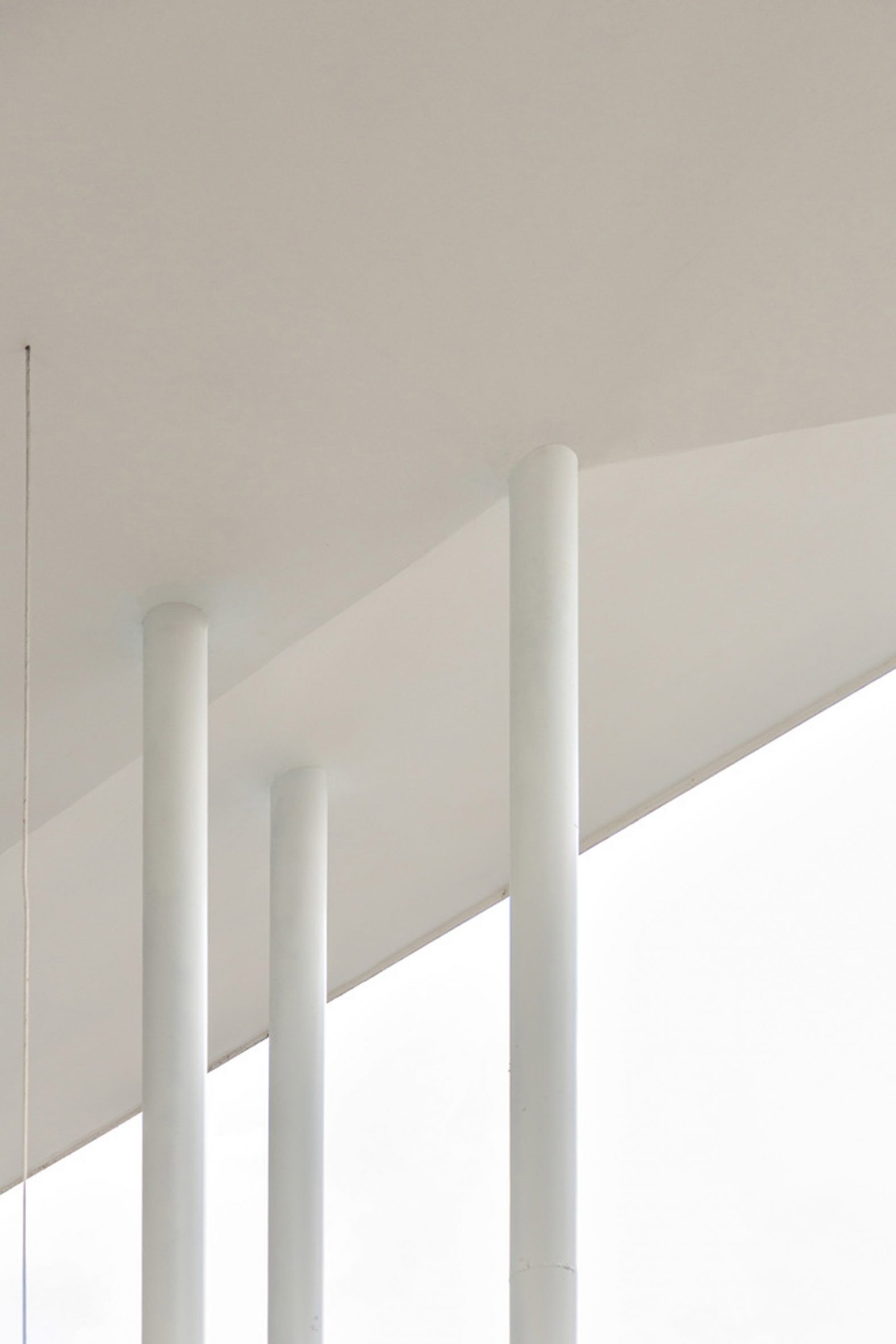 지붕을 떠받치는 구조 시스템은 이 건축의 핵심이다. 가느다란 흰색 기둥들이 일정한 간격으로 늘어서며, 마치 하프의 현처럼 수직선의 리듬을 만들어낸다. 설계팀은 하프 이미지에서 영감을 받았다. 장력 케이블이 기둥과 기둥을 팽팽하게 연결하며 지붕의 무게를 분산시킨다. 가느다란 기둥들은 단순히 구조적 역할만 하는 것이 아니라, 공간에 질서를 부여하고 걷는 사람에게 리듬감을 만들어낸다.