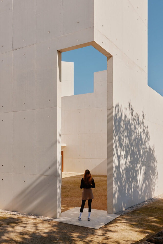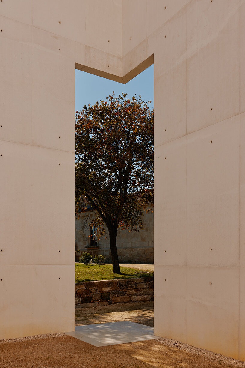 Álvaro Siza Vieira’s extension is defined by two vertical volumes framing an open courtyard paved in stabilized gravel, creating a moment of stillness between old and new. The design is pared back to essentials: smooth concrete surfaces, carefully considered textures, and a meticulous play of light and shadow foster a contemplative atmosphere. Every junction, line, and opening is purposefully composed, reflecting the Pritzker Prize winning architect’s signature clarity and precision. At the heart of the courtyard, the freestanding sculpture Wayfarer anchors the space, evoking themes of passage, reflection, and introspection. Landscape architect Sidónio Pardal extends this dialogue into the surrounding terrain with a subtle arrangement of paths and planted areas, embedding the structure harmoniously within its historic setting.