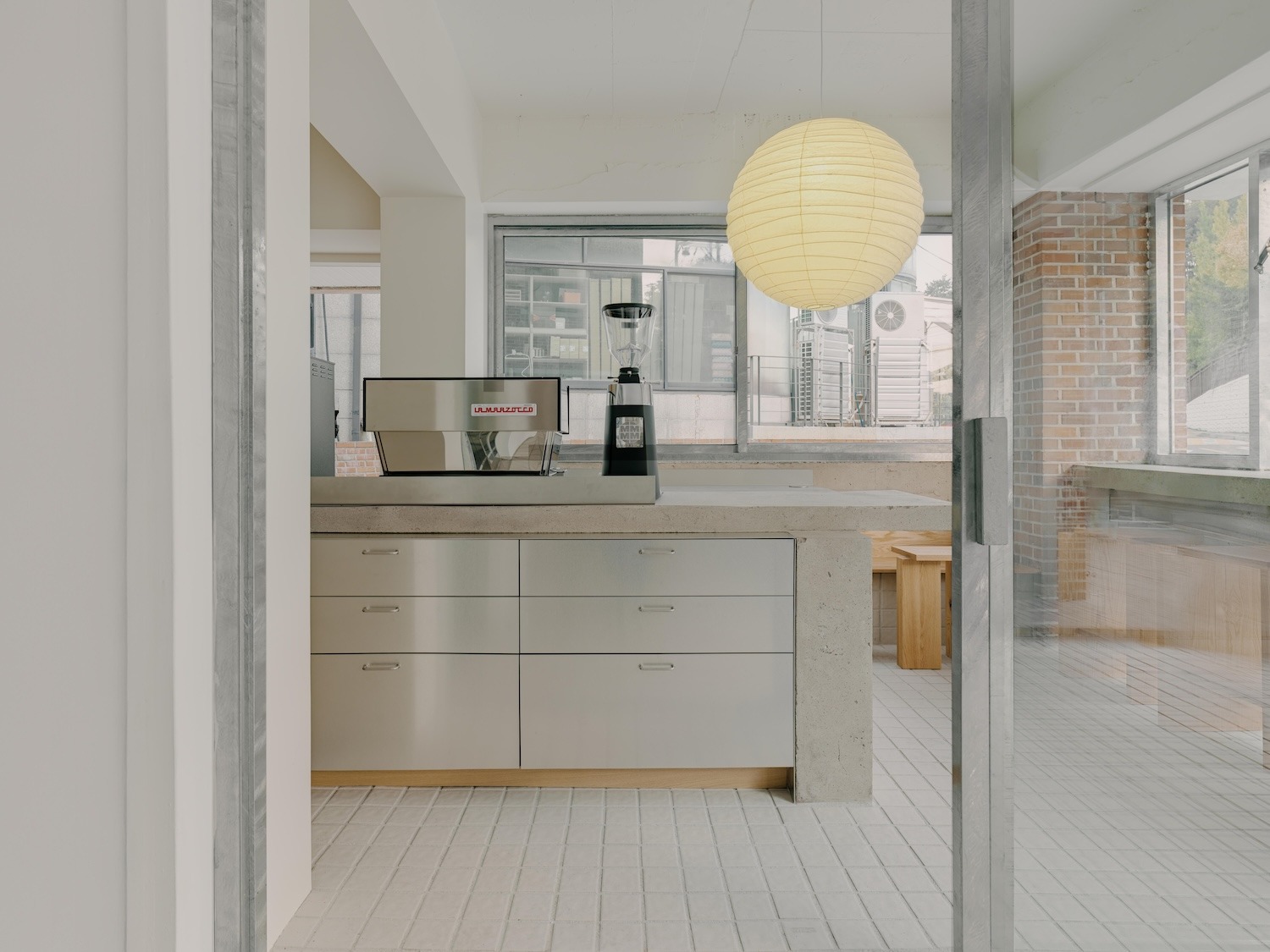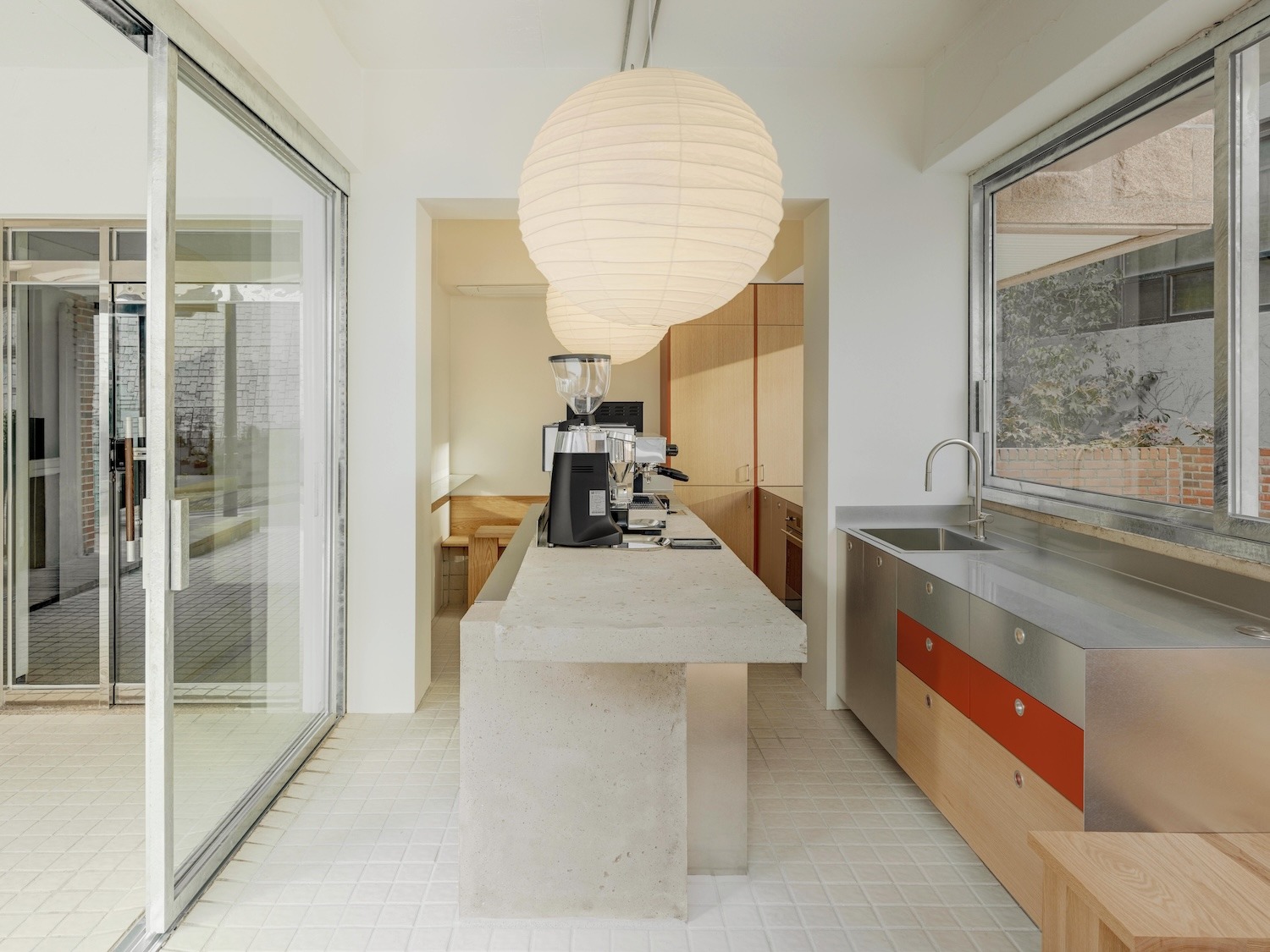 거리에서 보면 안이 훤히 보이는 이 작은 카페는, 무엇을 만드는지가 아니라 어떻게 만드는지를 보여주는 공간이다.