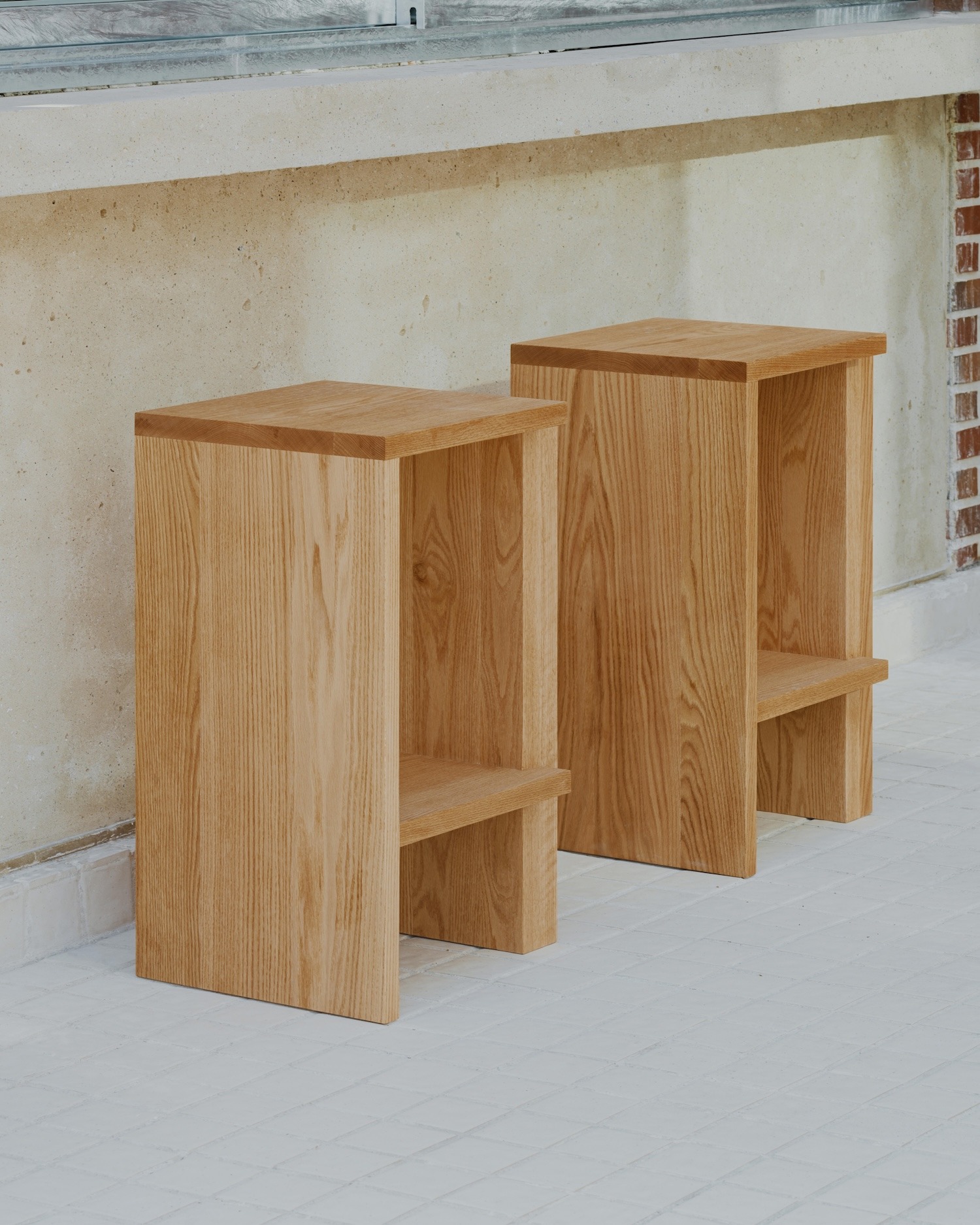 이렇게 드러내는 방식은 MMK 가구의 철학을 이어간다. 조립 논리가 눈에 보이고, 기계적 정직함이 심미적 성격을 결정한다.