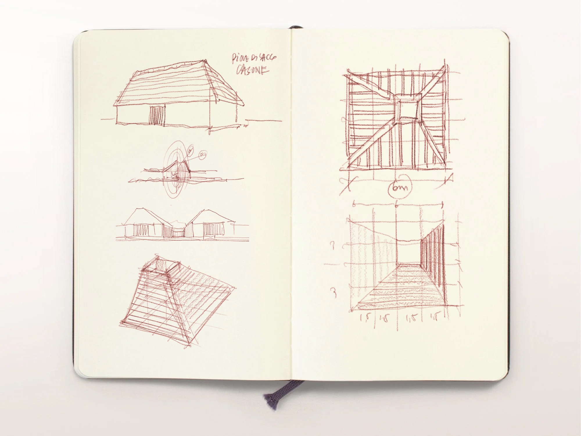이 유치원은 풍경의 기억에서 태어났다. 카소네 베네토, 베네토 지역 농부와 어부의 토속 가옥 원형을 재해석한 것이다. 초가지붕을 특징으로 삼은 이 전통 주거의 형태를 세 개 교실로 재해석했다. 피라미드 지붕은 연속된 테라코타 외피 속에서 공간의 강조점으로 솟아오른다. 이는 점토 건축과 경사 기와 지붕의 오랜 전통을 불러온다. 아래쪽으로는 부드러운 곡선의 붉은 콘크리트 벤치가 땅과 만난다. 이 벤치는 앉음터이자 놀이의 문턱이 되어, 교육과 자발성, 내부와 외부를 잇는다.