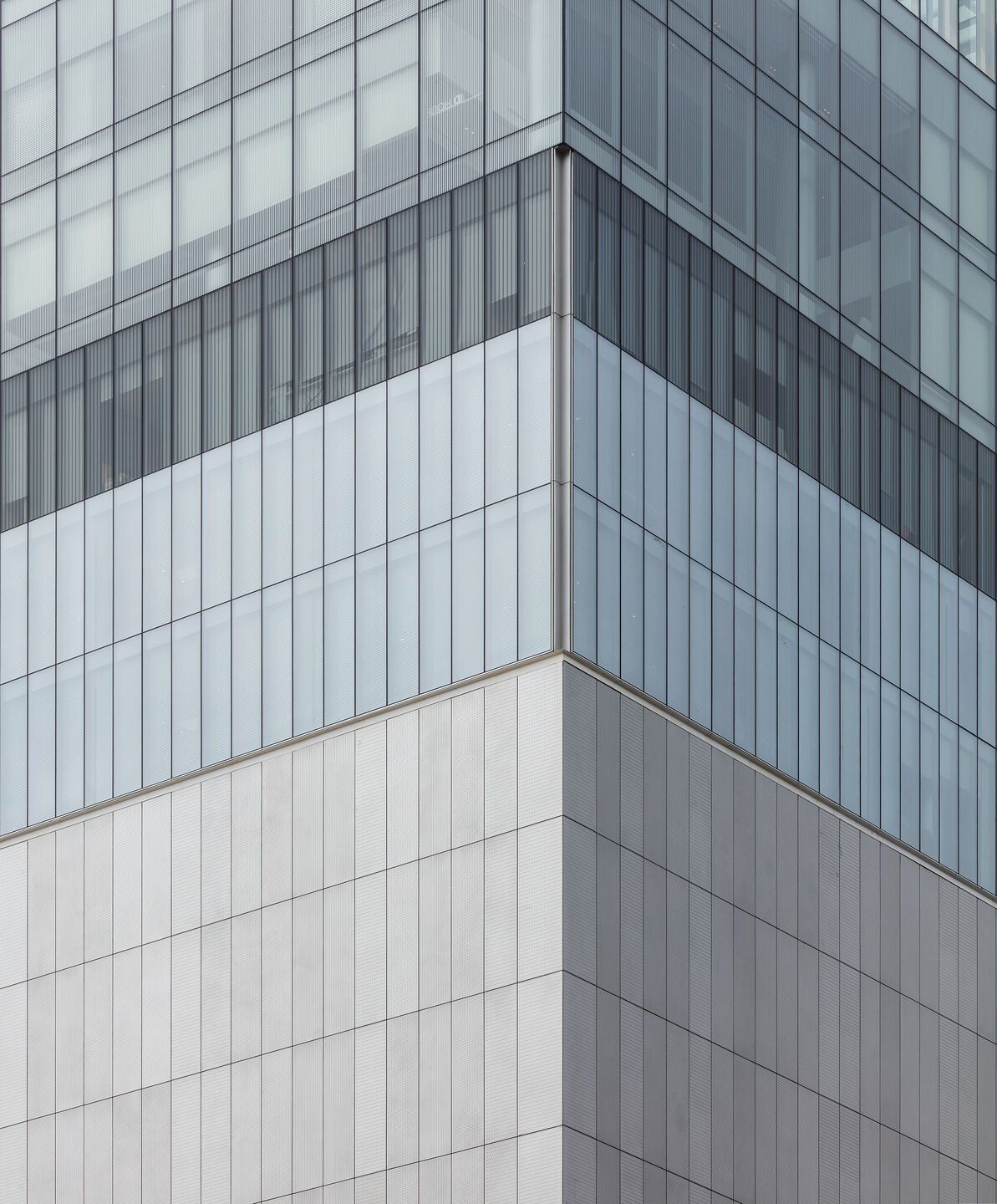 이 건축물의 핵심 작동 원리는 '프로그램 밴드(Programmatic Bands)'입니다. 기능적 띠 형태의 이 밴드들은 유연하게 배치되며 점진적인 외피의 변화, 즉 그라데이션 스킨(Gradation Skin)을 만들어냅니다. 저층부의 묵직한 벽돌 마감이 상층부로 갈수록 투명한 유리로 서서히 변화하는 모습은 단순한 시각적 연출이 아닙니다. 내부 프로그램의 성격과 수직적 배열에 따라 건축물이 환경에 스스로 적응해낸 결과입니다.