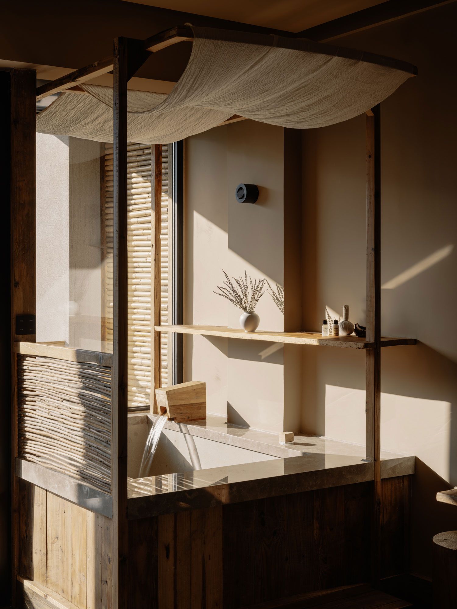 루무 디자인 스튜디오는 미리 정해진 컨셉을 강요하기보다 현장에 대한 깊이 있는 탐구를 선행했다. 그들은 산세를 탐험하고 현지의 전통 건축 기법을 기록했으며, 인근의 목재 공장과 대나무 채취 현장을 직접 방문했다. 이러한 과정을 통해 축적된 재료와 문화적 지식은 호텔의 외관부터 인테리어 마감 디테일에 이르기까지 모든 디자인 언어의 근간이 되었다. 특히 건설 과정과 탐사 중에 발굴된 폐자재를 단순히 보조적인 장식이 아닌 디자인의 핵심 요소로 활용한 점은 이 프로젝트가 지향하는 생태적 검소함을 잘 보여준다.
