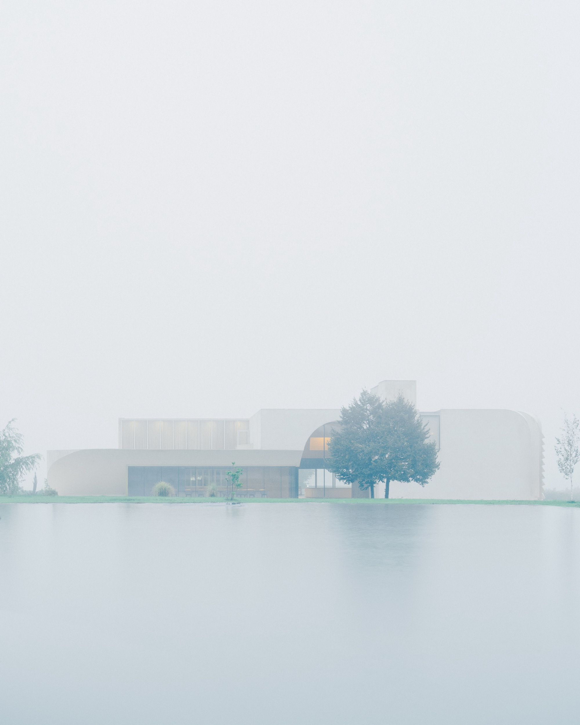 이러한 이분법적 긴장은 표면 처리에서도 이어진다. 한쪽 면은 손으로 빚은 듯한 거친 질감의 벽체가 대지와의 연결성을 강조하는 반면, 다른 한쪽은 매끄럽고 차가운 표면이 극명한 대조를 이루며 건물을 주변 풍경 속으로 투명하게 스며들게 만든다.