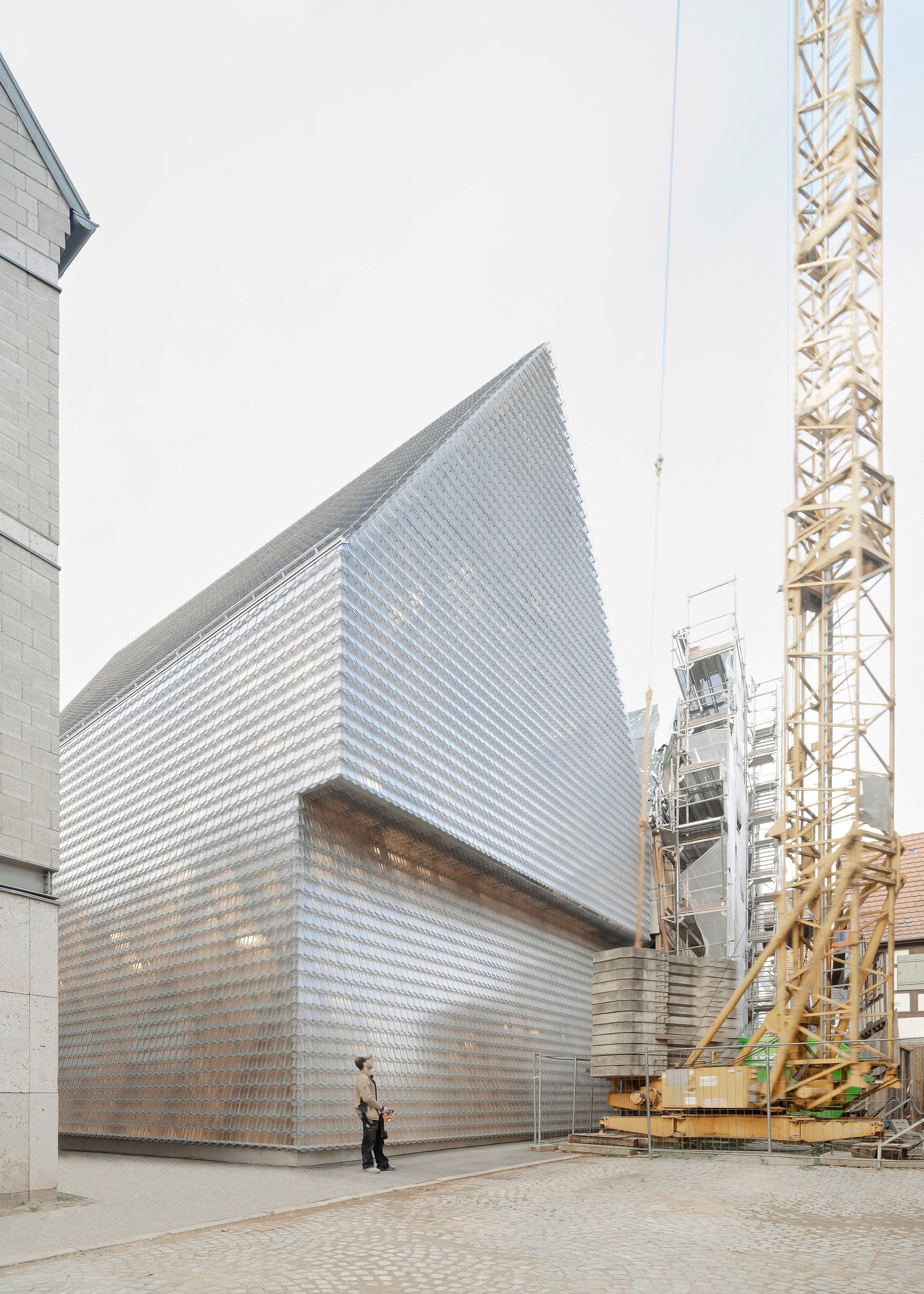 No thermal insulation or air conditioning is required in the new building, which also serves as a protective enclosure for the historic cellar. Open joints along the entire exterior of the building provide natural ventilation and smoke extraction. The building was designed for circularity in accordance with the Cradle to Cradle (C2C) design and sustainability concept. Thus, all connections are screwed together so they can be easily disassembled.