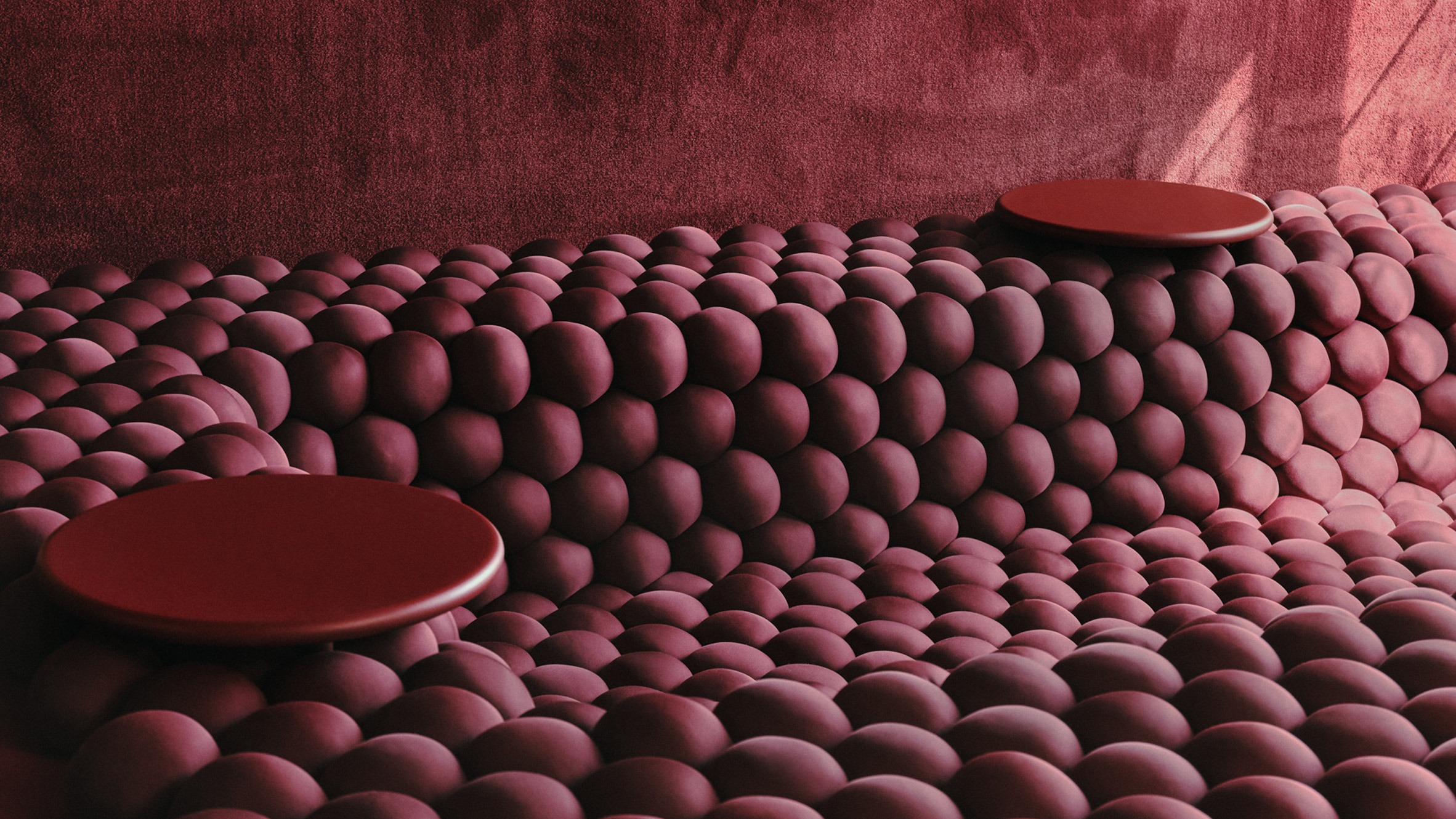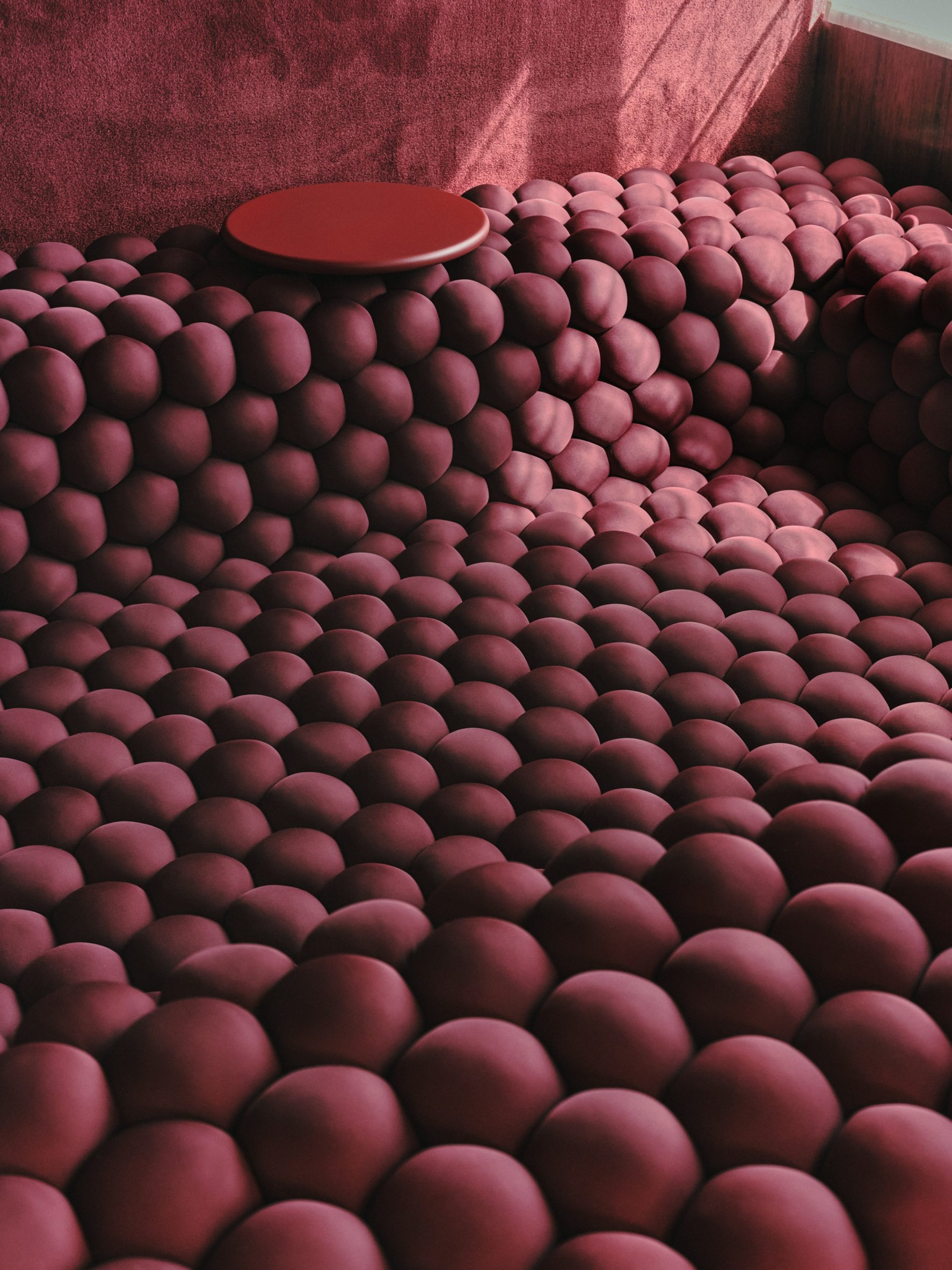 The balls can be used to cover geometric or curved forms, enabling the studio to adapt the shape to suit different spaces and scenarios envisaged by the user.