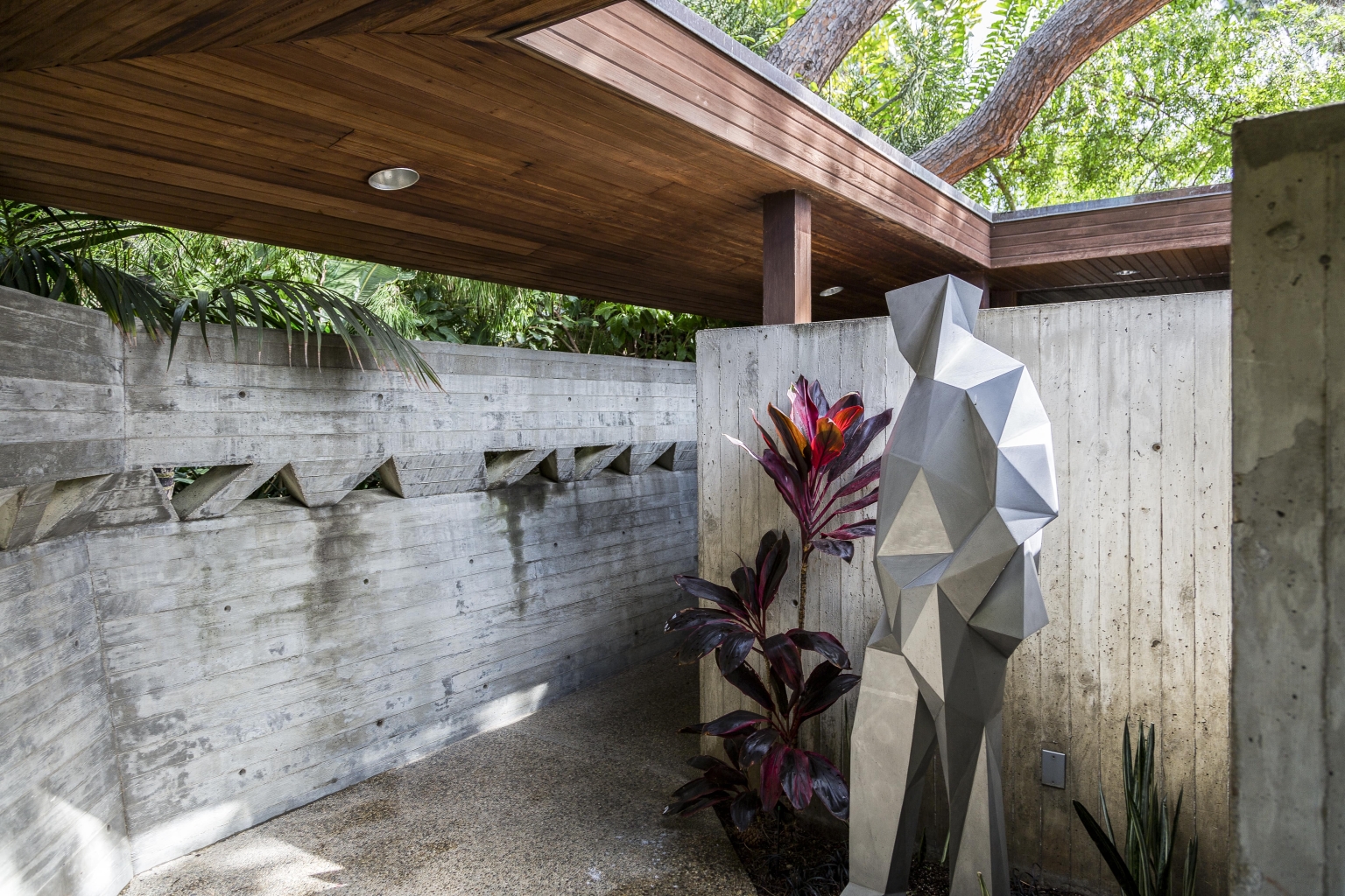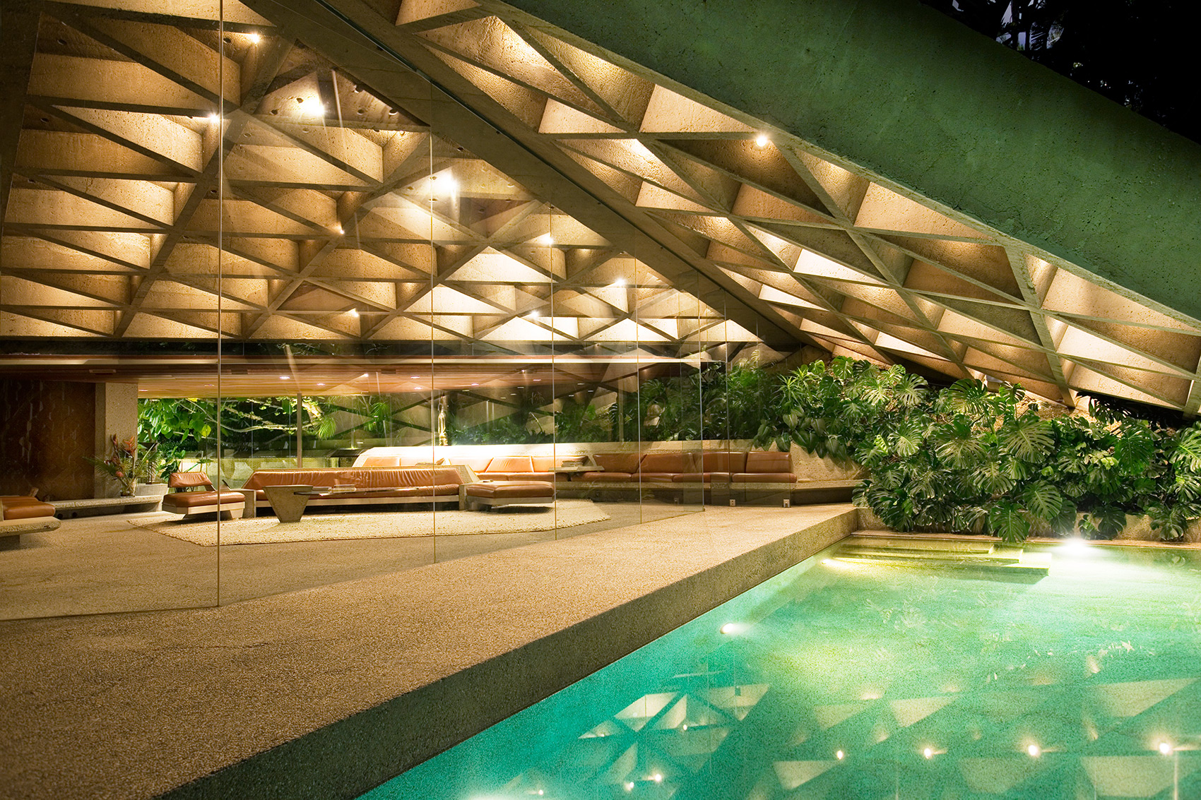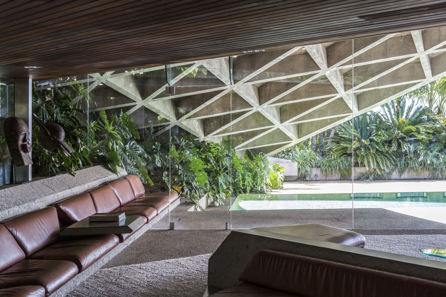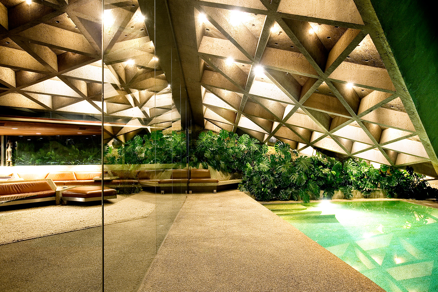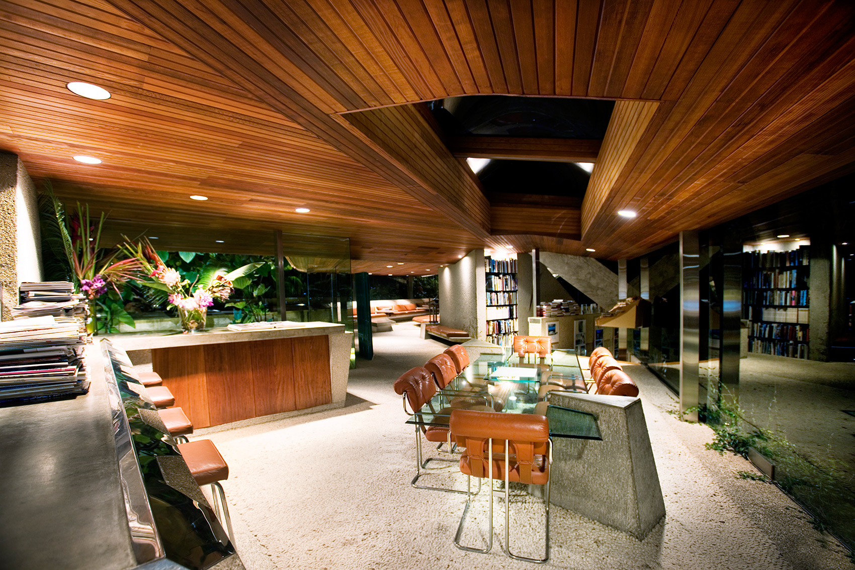 내장 가구와 경계 없는 유리벽은 공간의 연속성을 극대화한다. 작은 자갈을 닮은 카펫, 주택 벽을 타고 올라가는 부드러운 넝쿨, 그리고 사방에 울창하게 자리 잡은 열대 식물들은 건축물이 자연과 완전히 용해되는 감각을 선사한다.