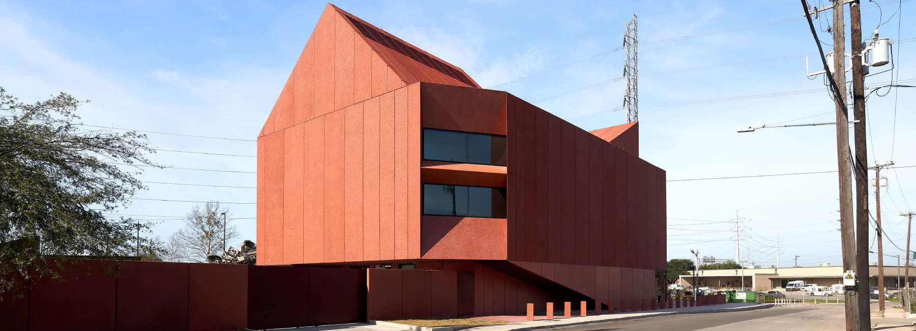 루비를 형상화하는 외형적 특징은 멕시코에서 제조된 프리캐스트 콘크리트로 구현됩니다. 강렬한 레드컬러의 콘크리트 물성은 사람들이 직접 손이 닿는 저층부에서 전체 건물 이미지를 나타내는 상층부를 따라 다른 질감으로 표현됩니다. 매끄러운 질감에서 거친 질감으로 달라집니다.