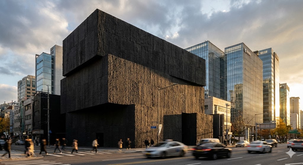 * 원칙 3. 도시와의 단절: 외부의 소음을 차단하고 내부의 밀도를 높이는 '폐쇄적 입면'의 당위성을 논리적으로 증명할 것.