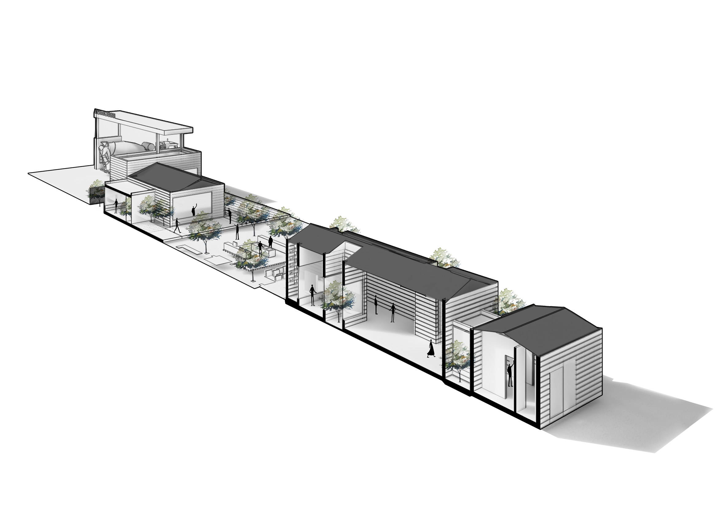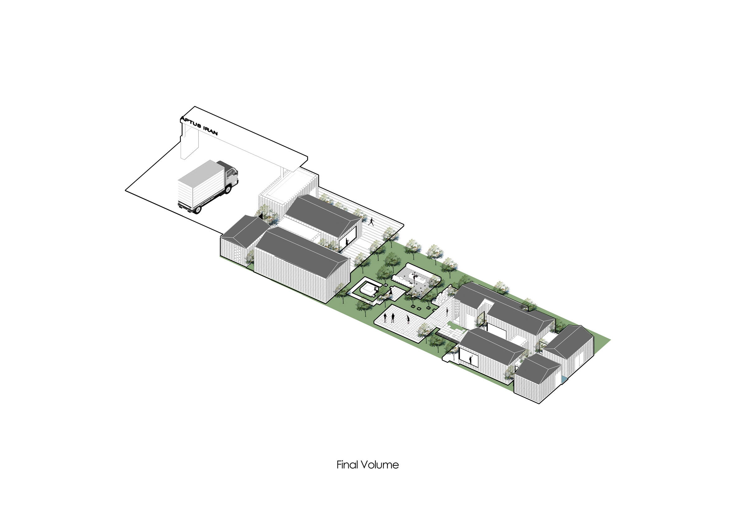 "Instead of creating a huge 'box' surrounded by greenery, it was decided to break the volume into smaller boxes which are independent and characterized based on their function," Balazadeh said.
