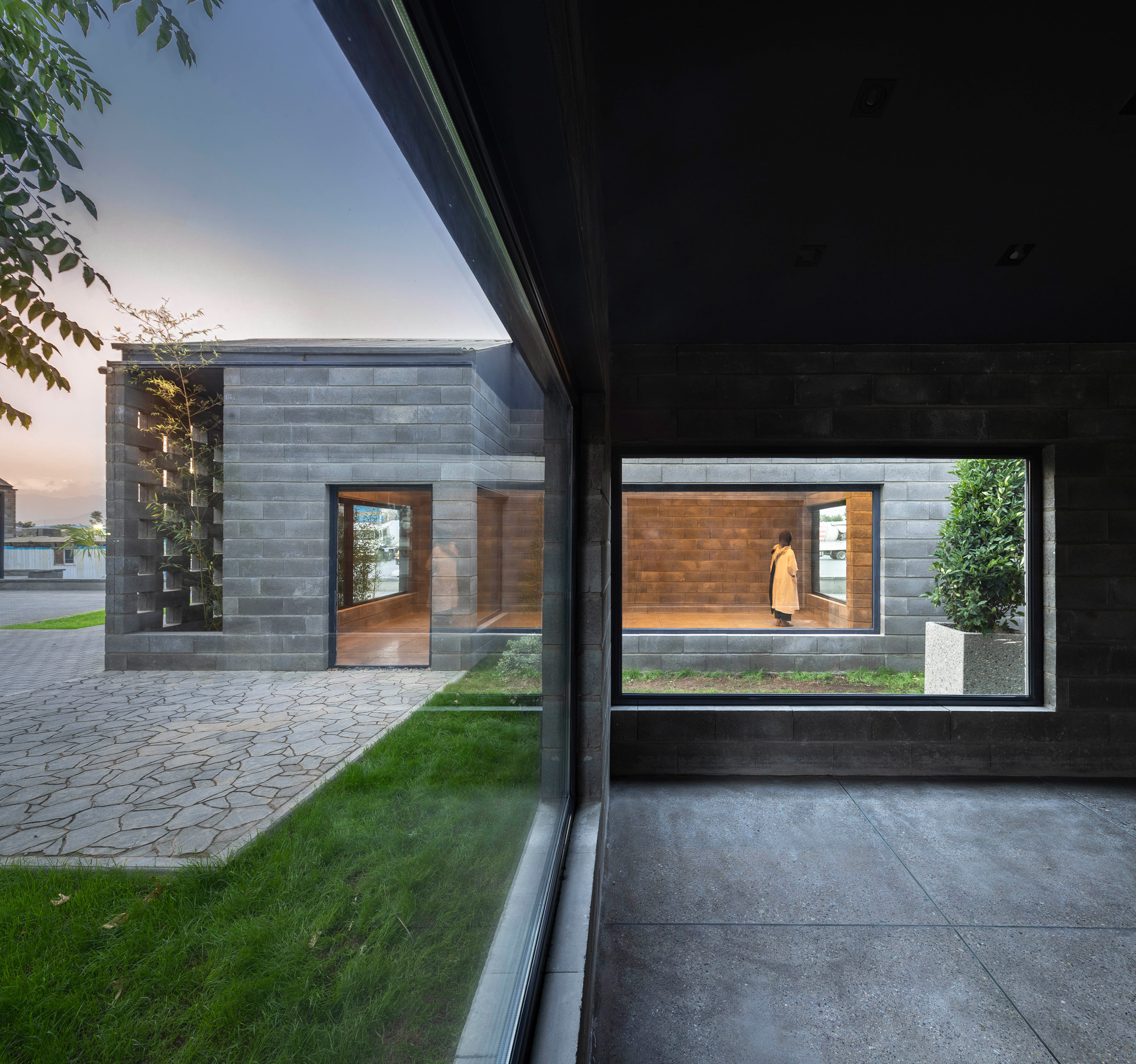 The studio was asked to create an indoor-outdoor showroom for the factory, whose previous showroom was located in one of its factory buildings.