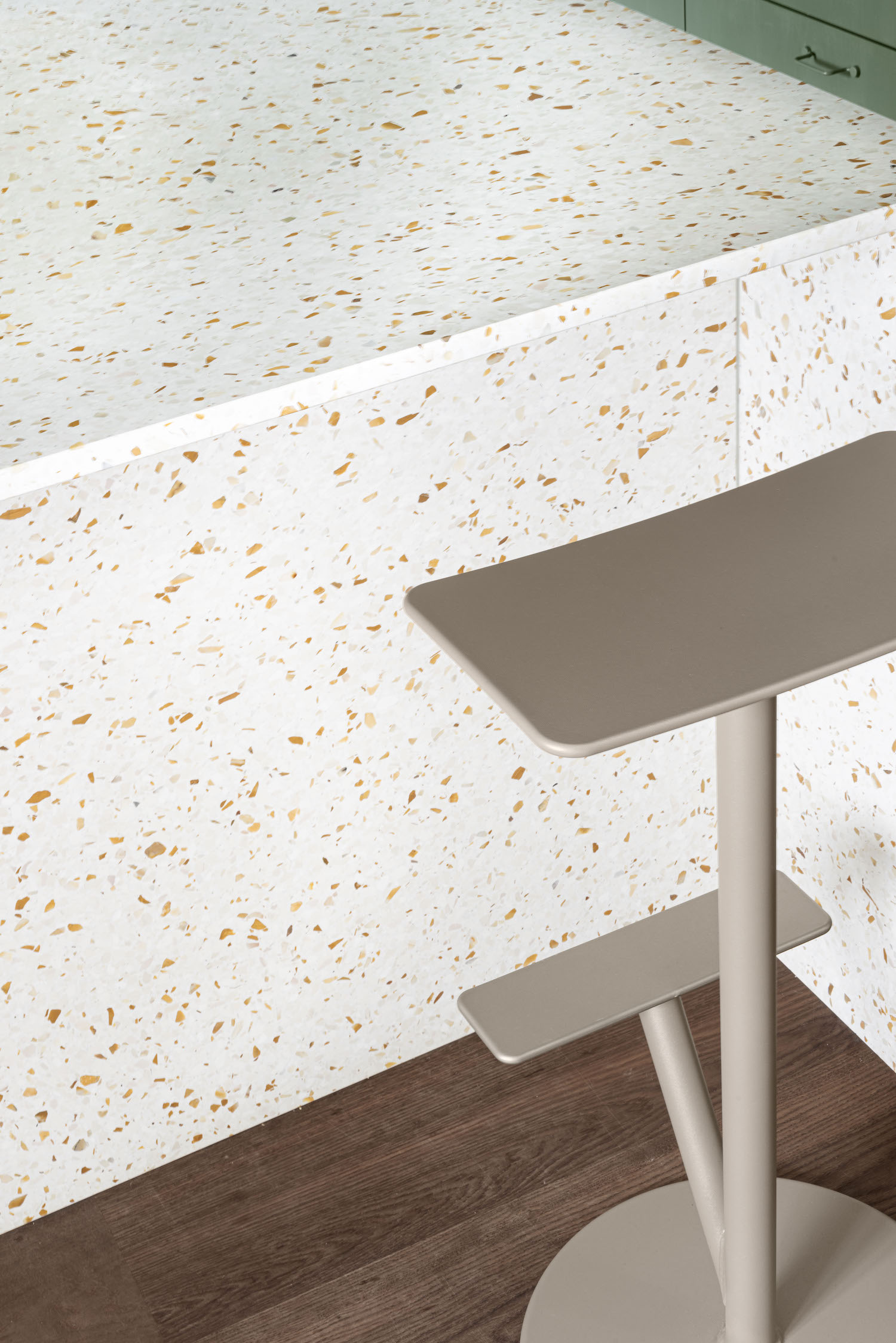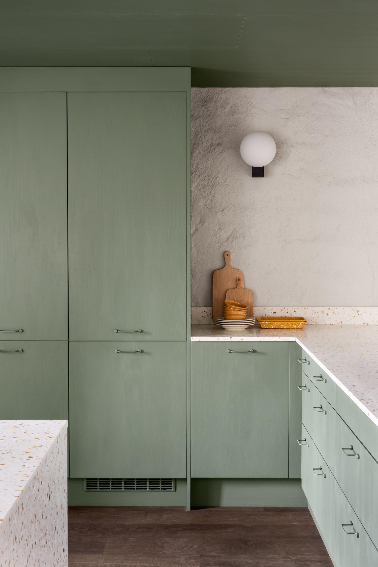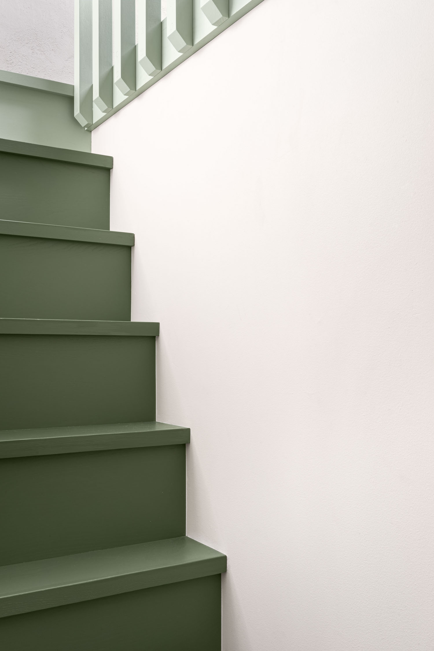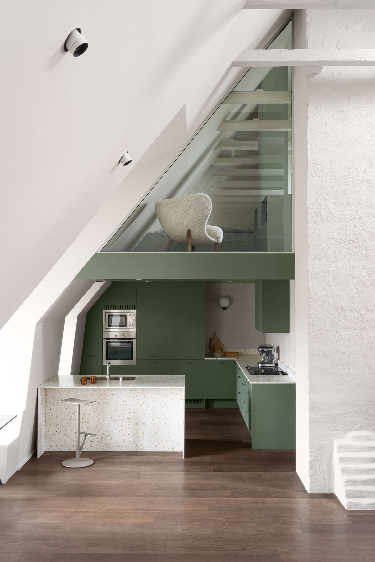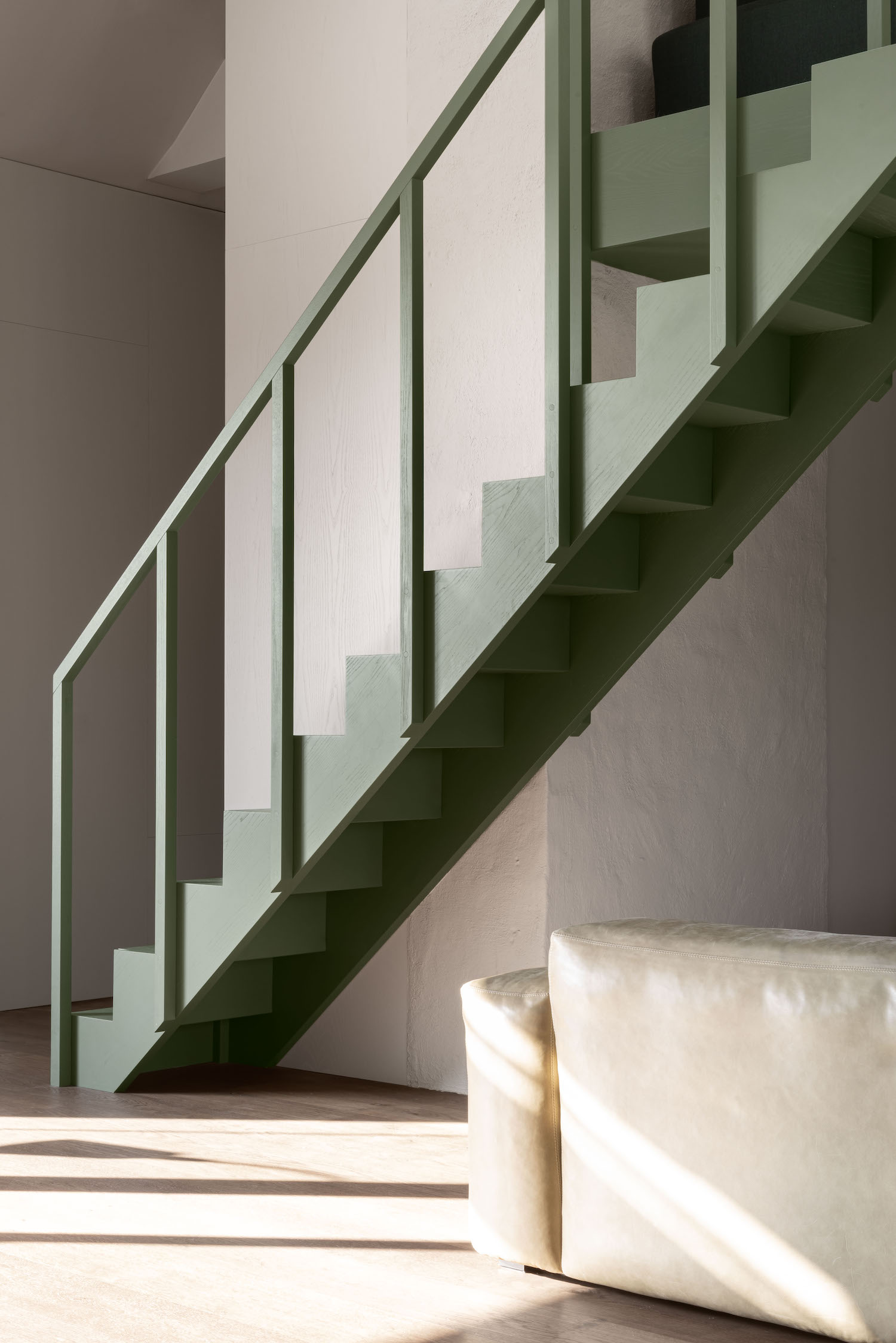 기존 공간은 유지한채 수직으로 확장된 내부는 미니멀한 공간을 바탕으로 다크그린 컬러의 요소가 가미된