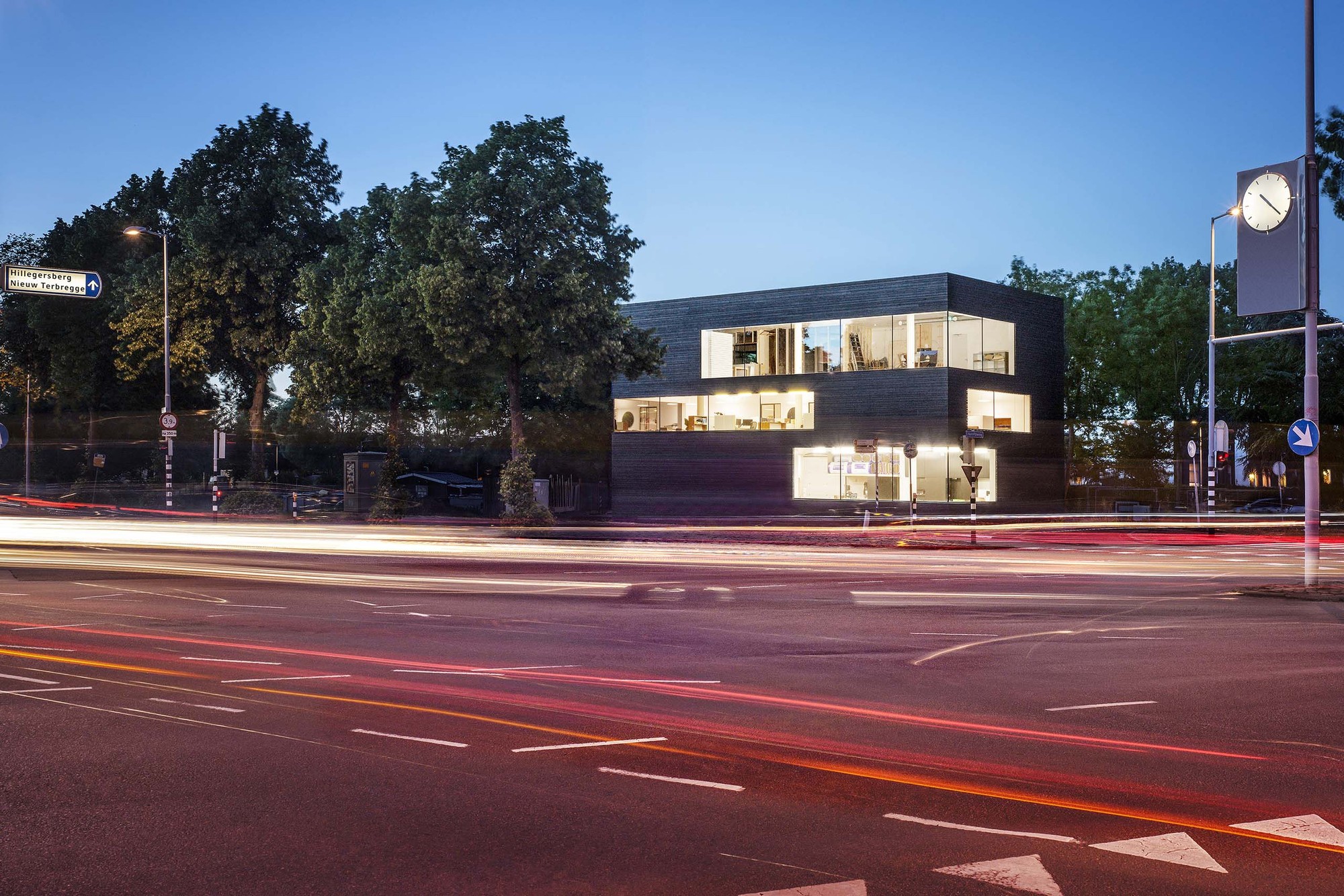 검은색 우드판넬이 표현하는 심플한 건축어휘가 인상적인 건물은 13Speciaal를 위한 작업실 및 쇼룸으로 제안된다.