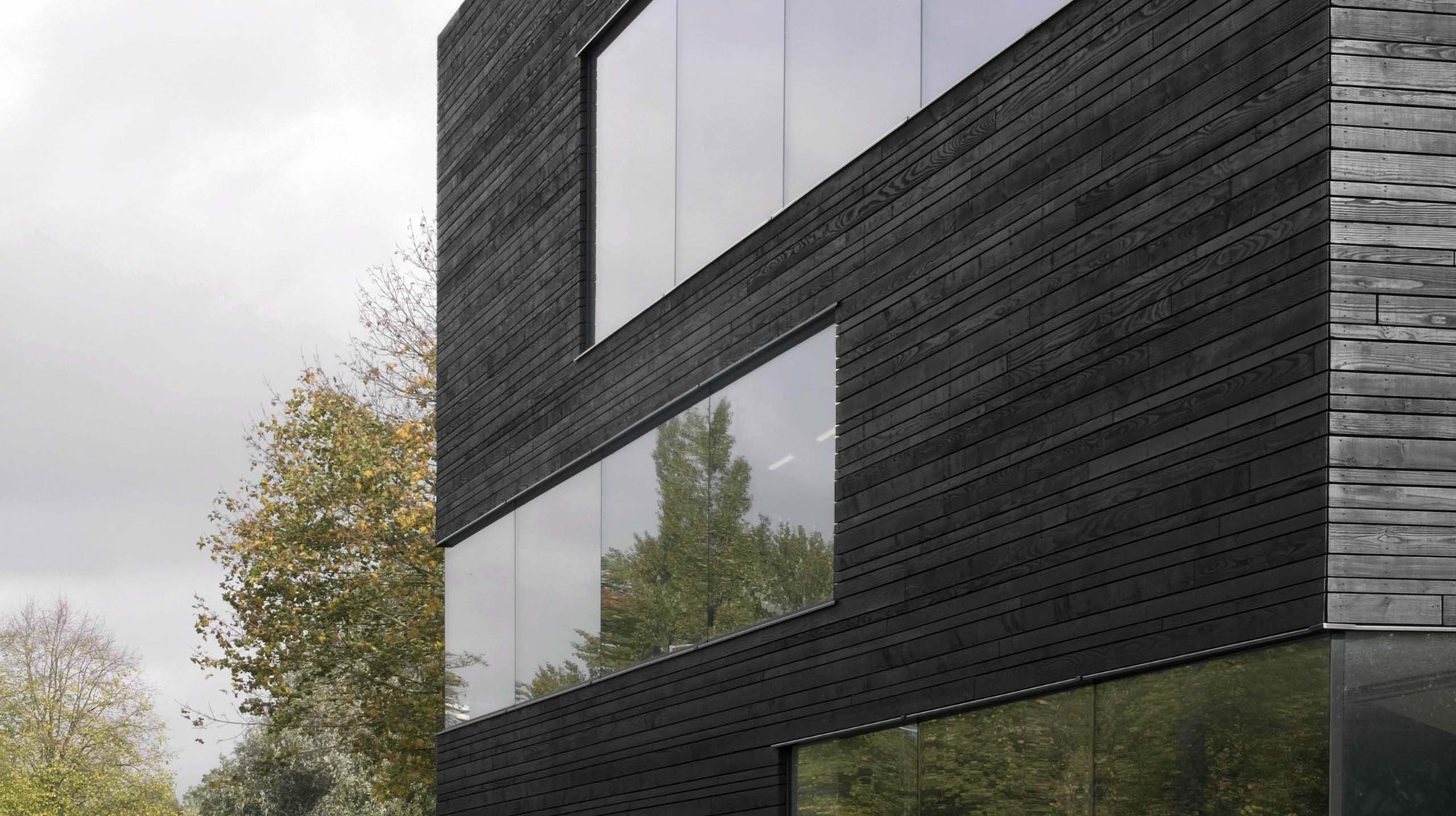 검은색 우드판넬이 표현하는 심플한 건축어휘가 인상적인 건물은 13Speciaal를 위한 작업실 및 쇼룸으로 제안된다.
