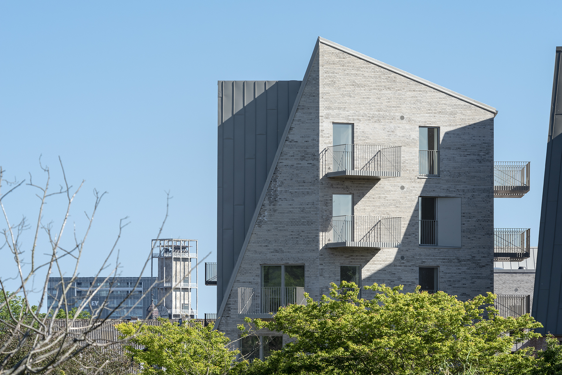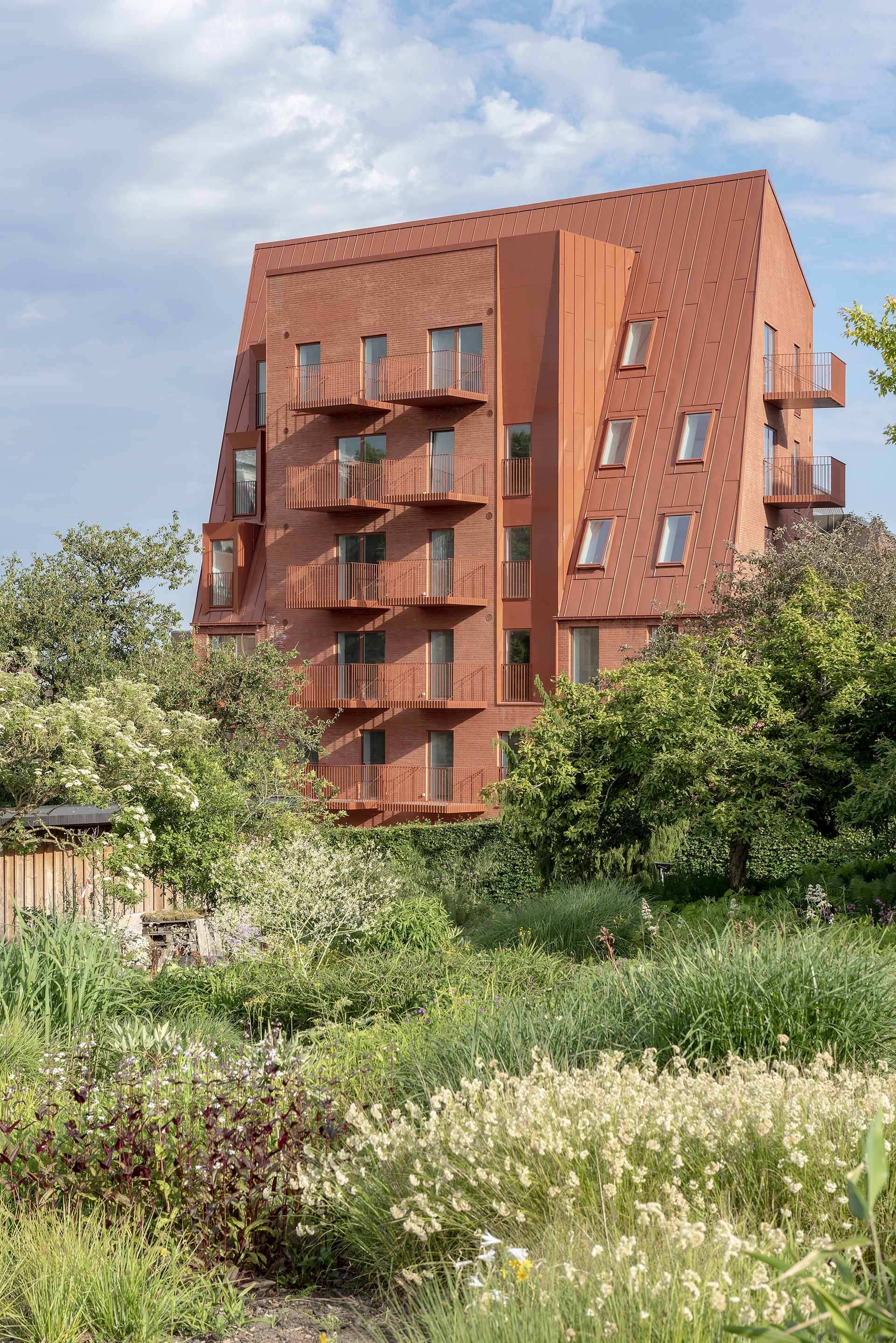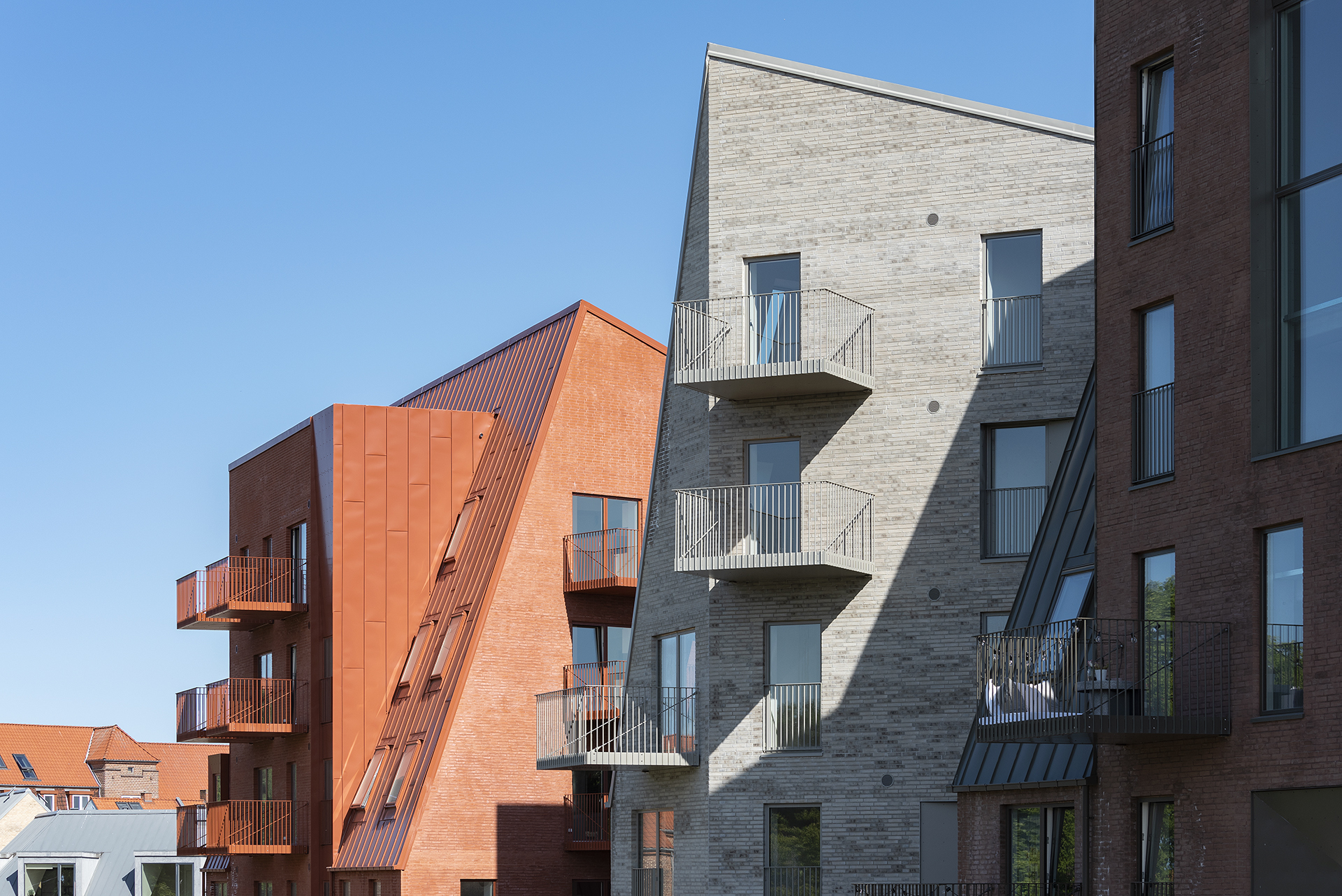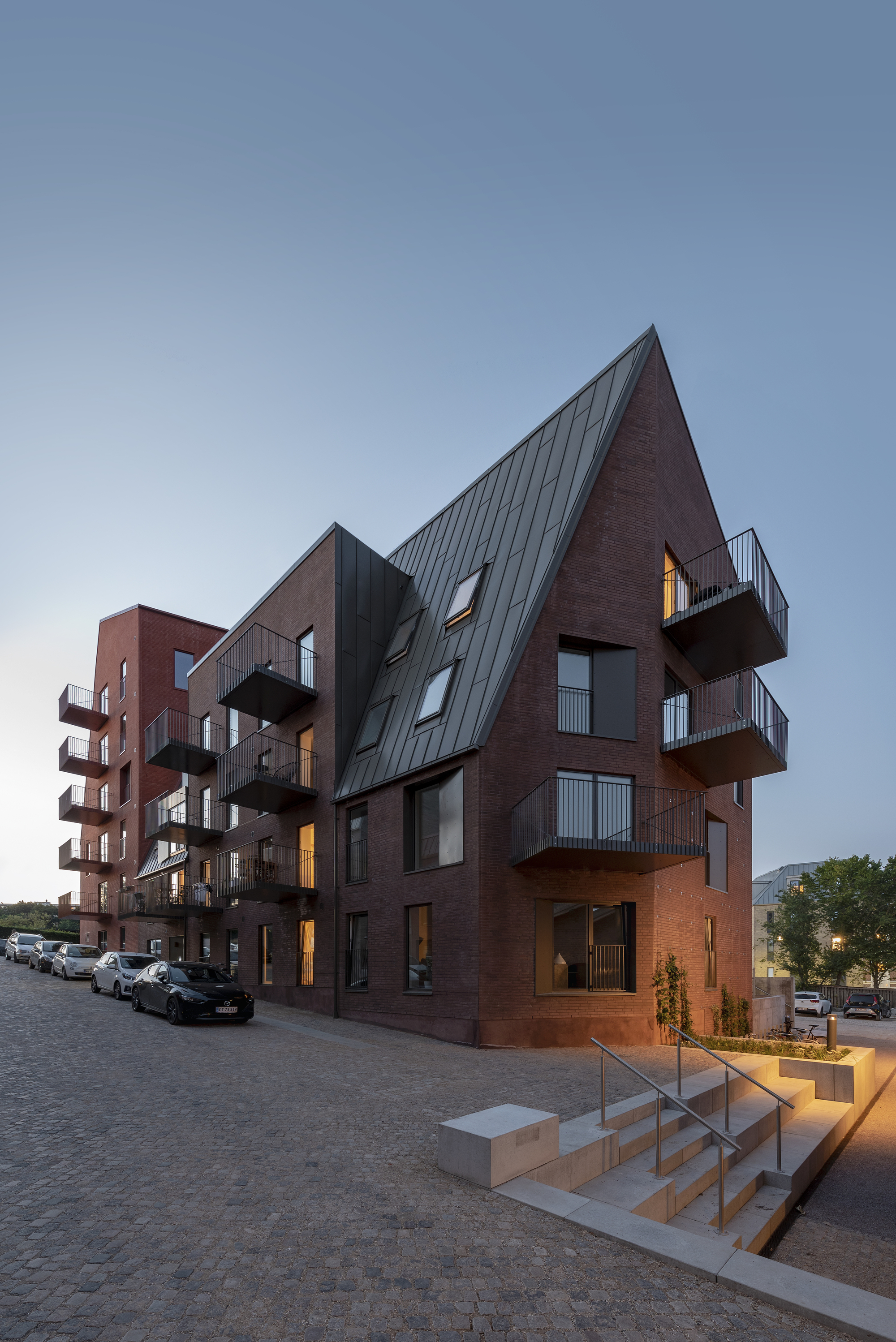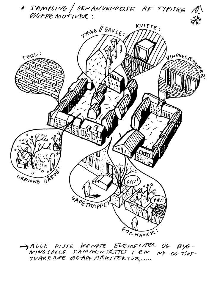 Greatest hits. The design emerges from what could be called architectural sampling of the surrounding urban context. CEBRA mixes, combines and reinterprets the Øgade area’s distinctive architectural elements such as perimeter block structures, brick facades, green courtyards and the cosy street. Furthermore, Æbeløgade’s architecture uses dramatic roof pitches, dormer windows and large window sections to create jumps and surprising variations throughout the block.