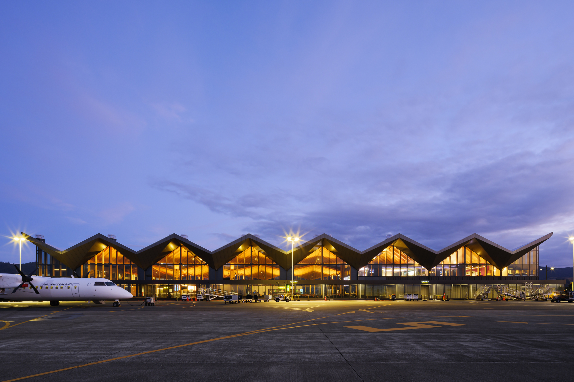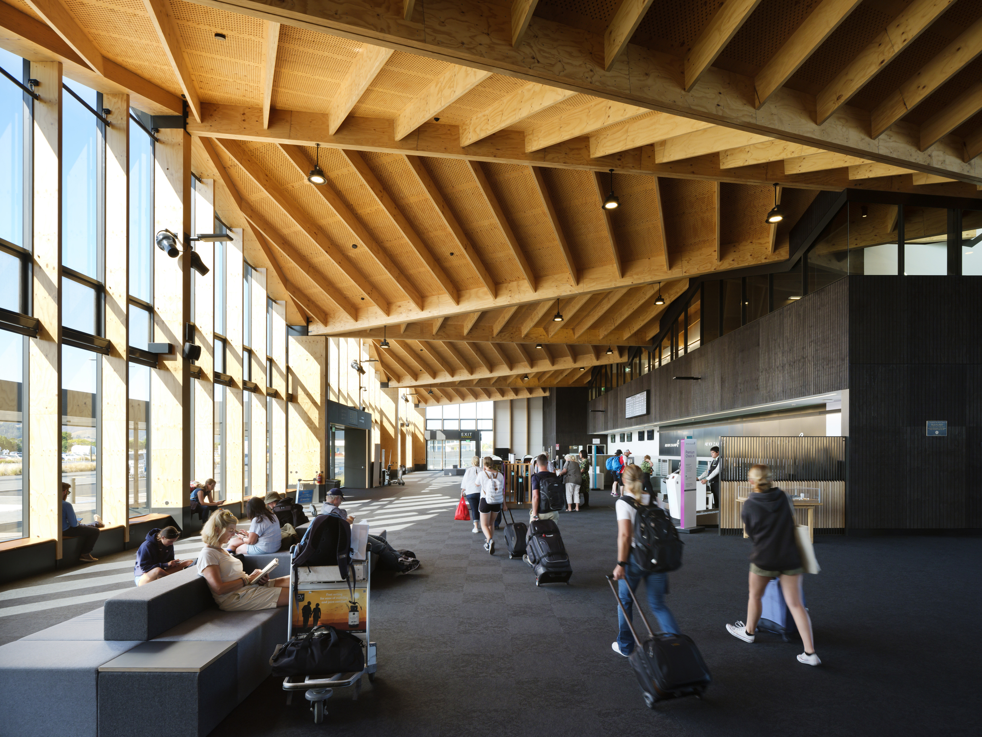 The brief was for an airport that operated efficiently, both as a transportation hub and a safe and viable business, but also, aspirationally, one that reflected uniqueness to Nelson, connection to the landscape within the building, and extensive use of local materials. Two main strategies have been chosen to deliver on the expectation for an environmentally sustainable design; natural ventilation and the use of a mass timber structure coupled with a resilient seismic structural solution.