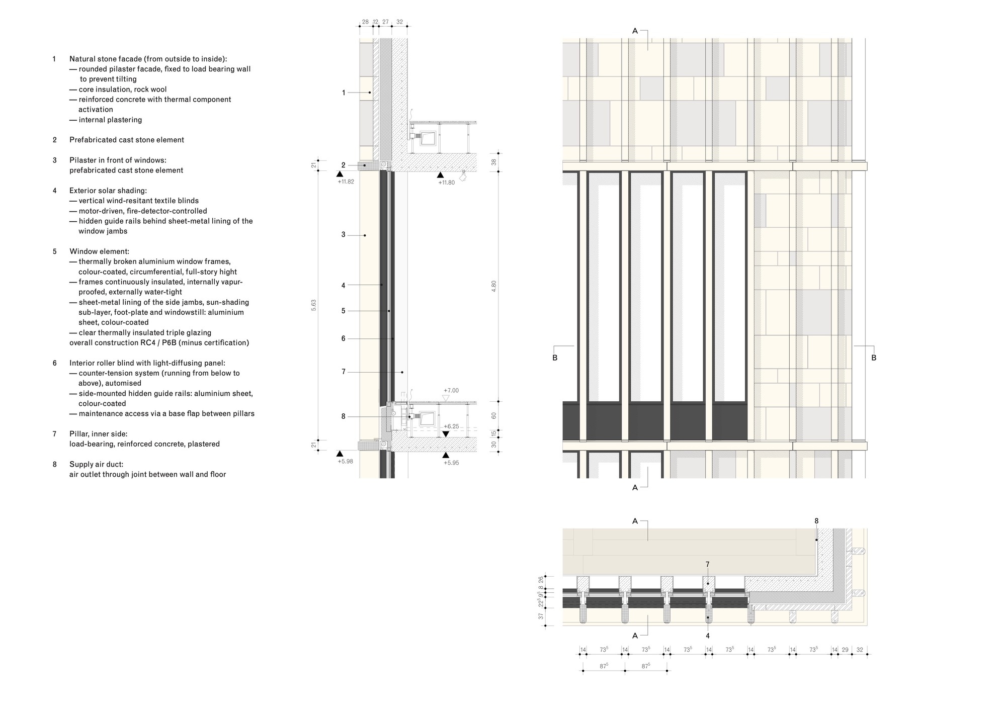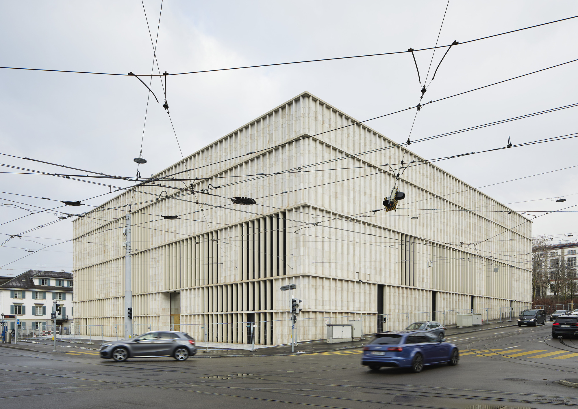 Kunsthaus Zürich 뮤지엄 프로젝트는 기존 뮤지엄과 별개로 새롭게 신축(증축)되는 4개의 건물 중 하나 입니다. 기존 도시공간 속에 자리한 공공건물들의 외형적 특징; 석재을 따라 석회질계열의 석재가 적용됩니다. 여기에 날렵한 버티컬(길다란 수직 핀과 같은)을 적용, 전통적 맥락과 새로운 건축공간의 건축적 발란스를 맞춥니다.