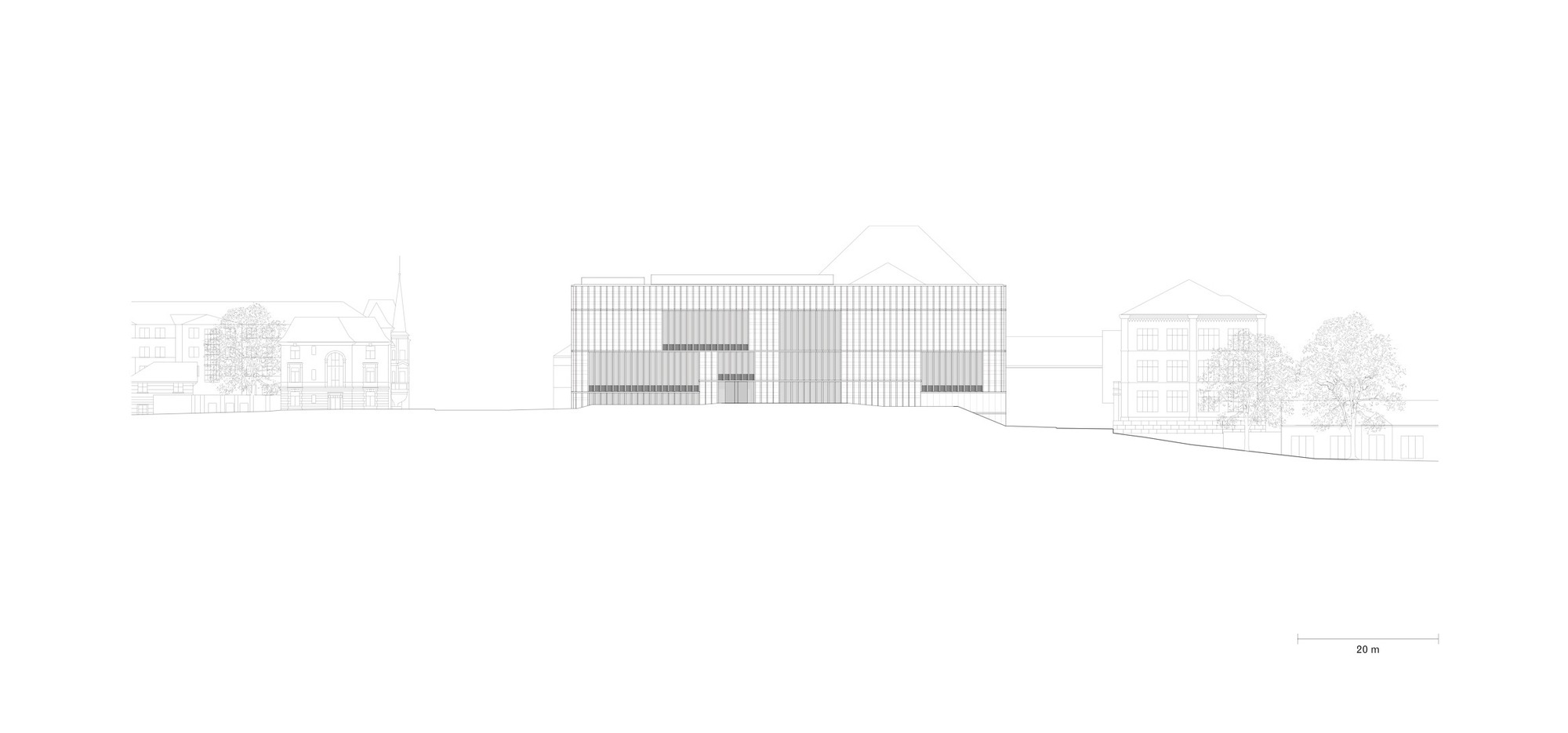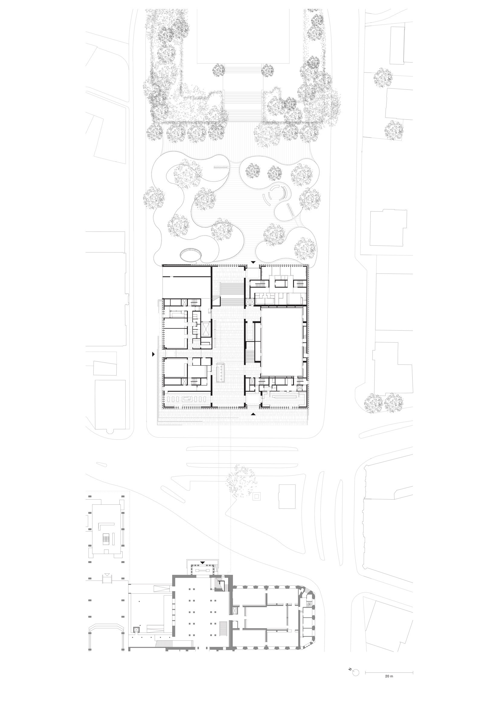 Based on the Central Campus masterplan published in 2007, the museum buildings and the Schauspielhaus theatre located on the east side of the urban square Heimplatz, form a gateway of the arts as an urban entry to the education mile. Here, the large freestanding buildings of Zurich’s universities are lined up like a string of pearls leading northwards.