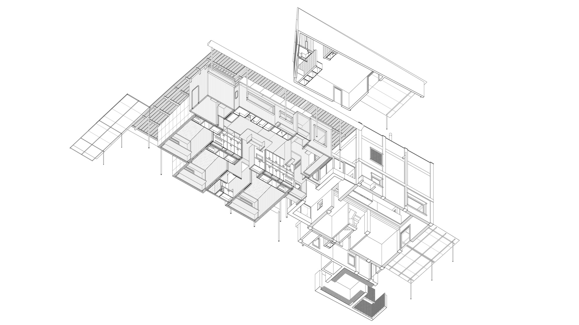The value of this place was not the existing main house. Although its structure was quite in good shape, what made it inhabitable were its self-built garden structures. These outdoor shelters are the real quality of this place. They are impossible to design. Probably they are impossible to reproduce. They are extremely fragile, to the point that it seems impossible to repair them. What we needed to find was a way to up-cycle these structures, and add some more inhabitable air among them. Our approach was not to touch what we wanted to keep -we would just paint it.