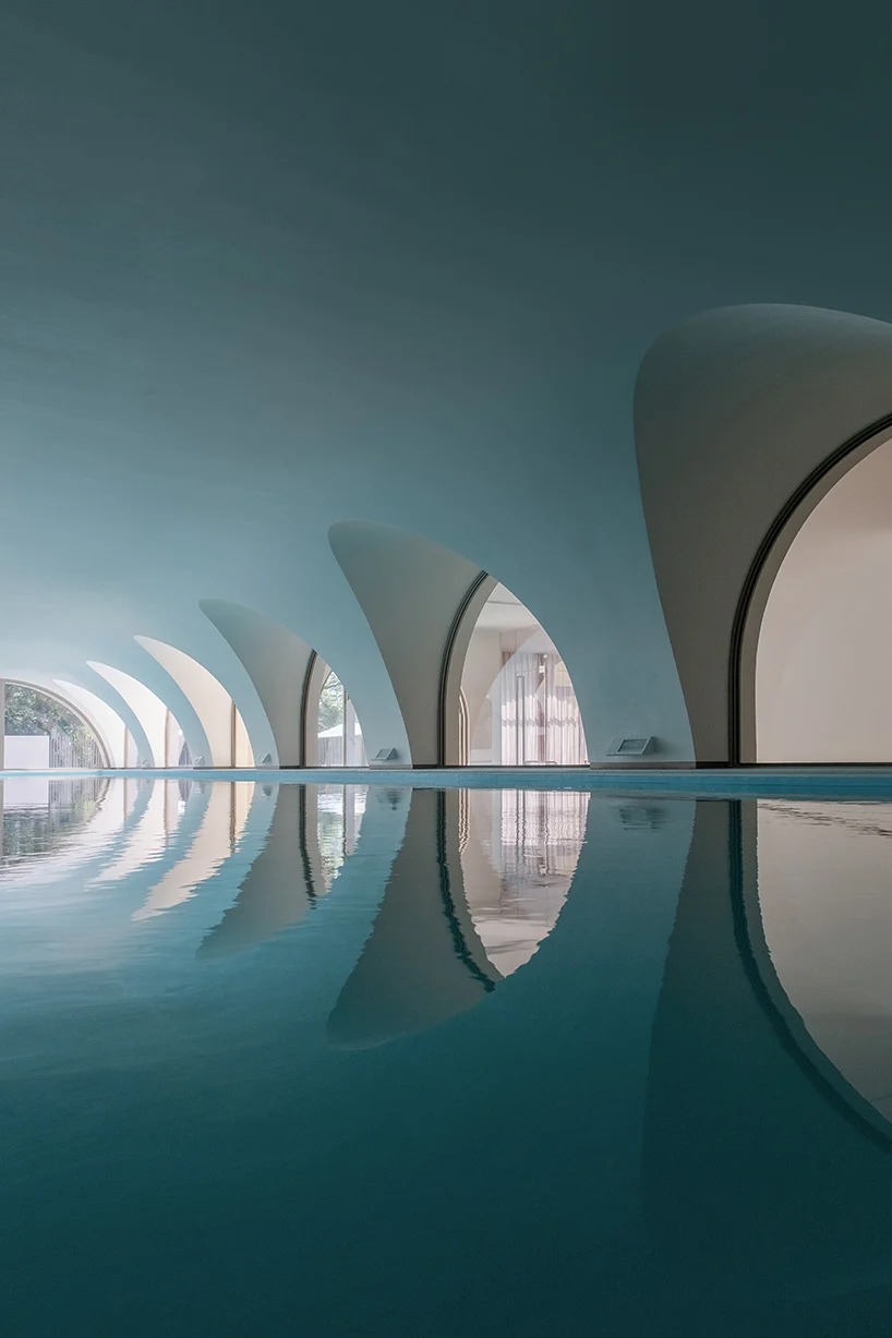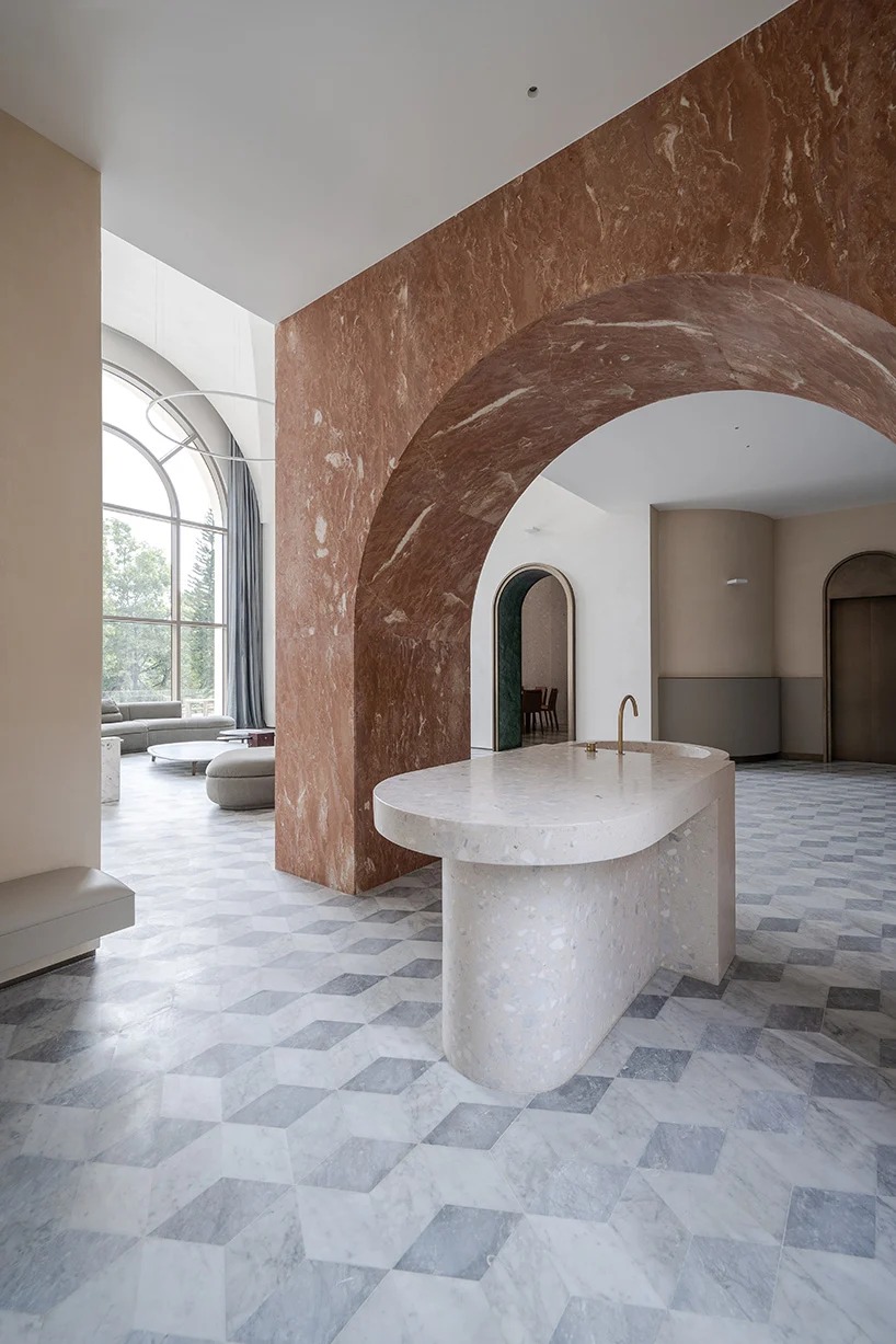 studio 10 approached the design by turning to the historical archetypes of countryside villas for inspiration: in the palladian villas, perspective and depth are often reinforced to facilitate interactions between the interior and the outdoor vistas. as a contemporary interpretation, the architects have added horizontal and vertical openings to reinforce both the depth and superimposing of spaces, connecting them with lines of the surrounding views. furthermore, arched window openings have been added on the exterior walls, acting as a framing medium of the landscape for the spectators inside.