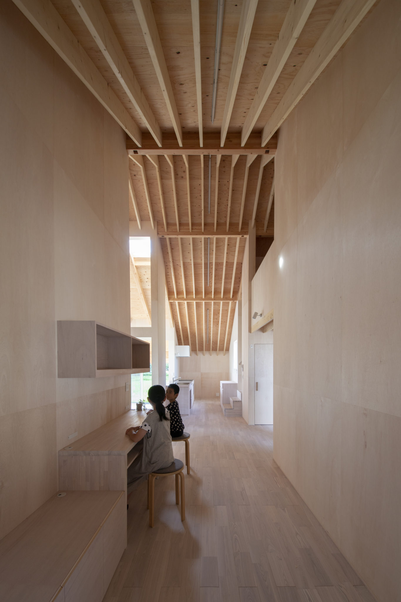 Kasa House is a minimal residence located in Aichi, Japan, designed by Katsutoshi Sasaki + Associates. In this plan, a large roof was used to loosely connect the surrounding environment with the internal space and living activities. Four eaves are arranged with a garden around it, while dining and living space intervene part of the garden. Each room takes in light and wind from two adjacent gardens. In addition, each garden is given different uses such as outdoor living, approach, kitchen garden, and laundry, but it is assumed that the use and landscape will change according to the life such as the growth of children in the future.